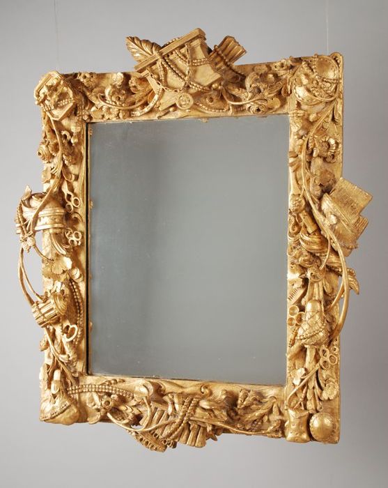 Vergulde lindehouten spiegel in lijst met gesneden t...
