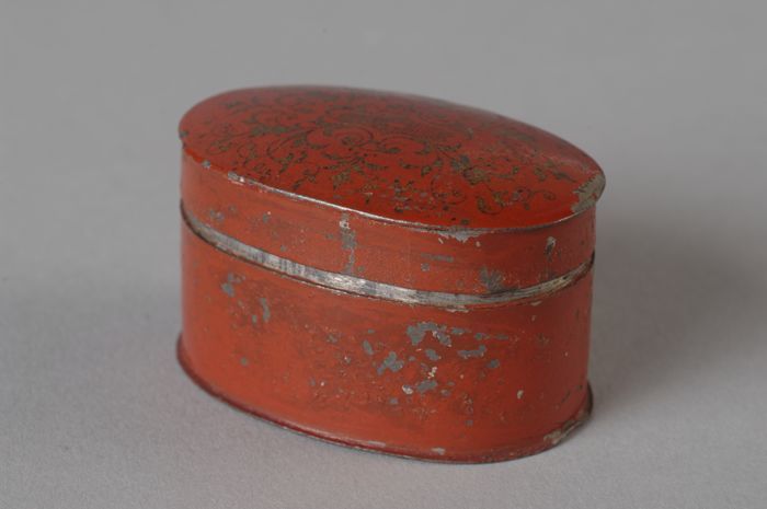 Gelakte koektrommel, met parelmoer ster ingelegd
