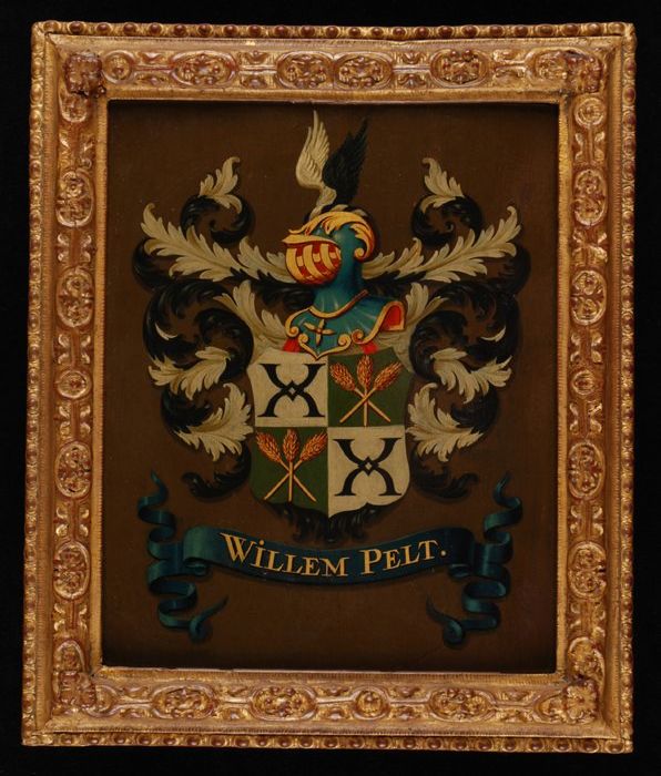 Wapen Willem Pelt, in vergulde geornamenteerde lijst