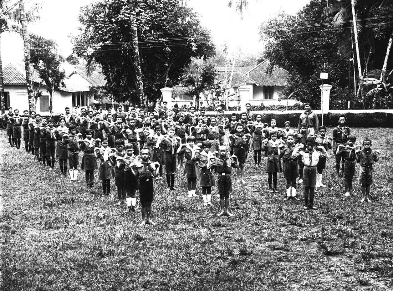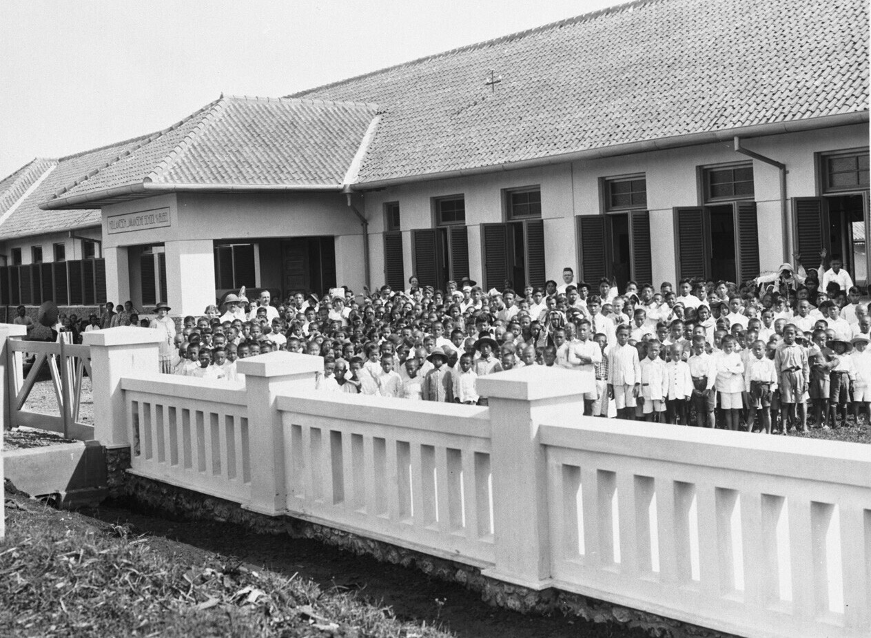 Groepsportret voor de Hollands-Javaanse school met d...