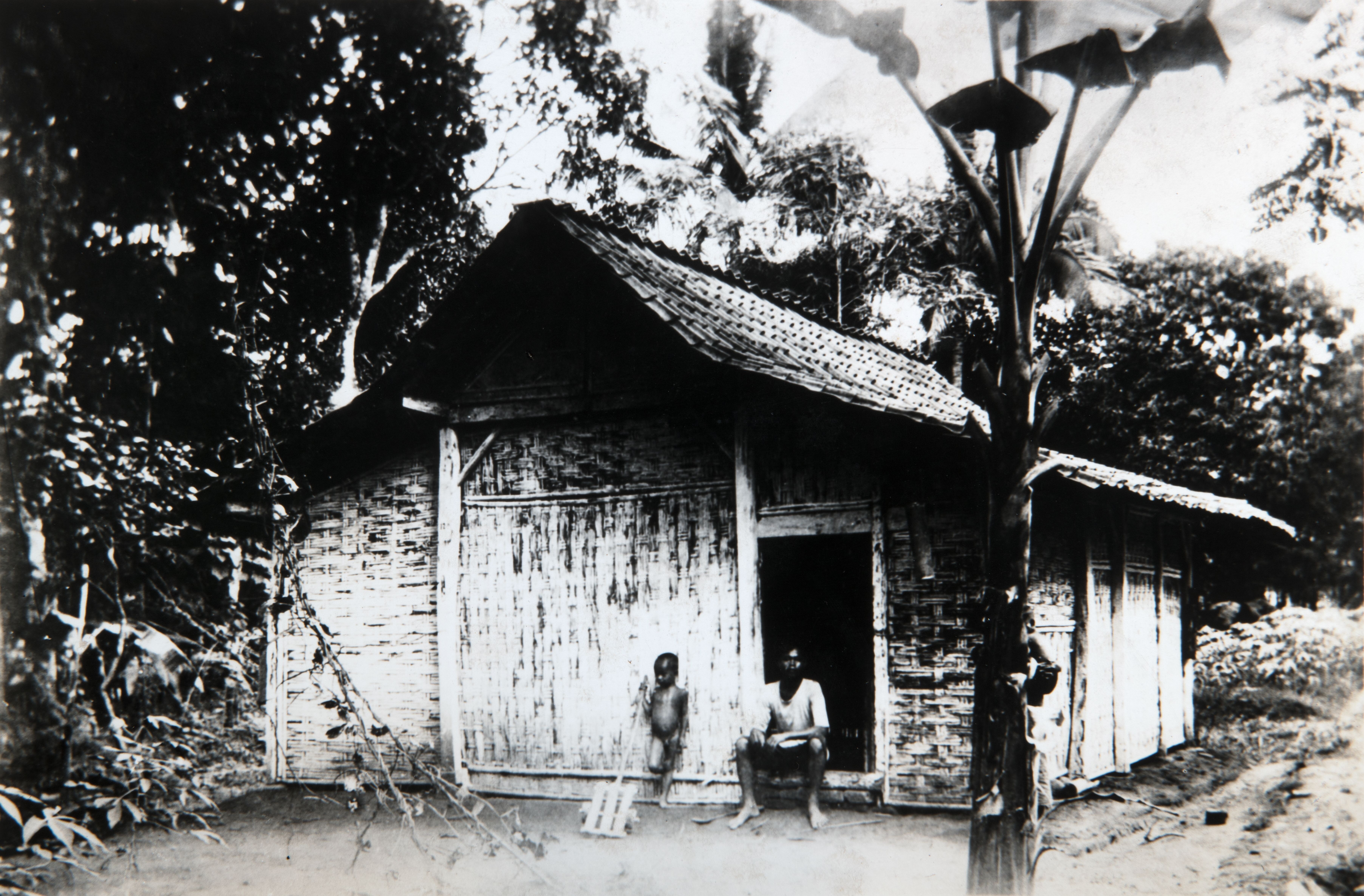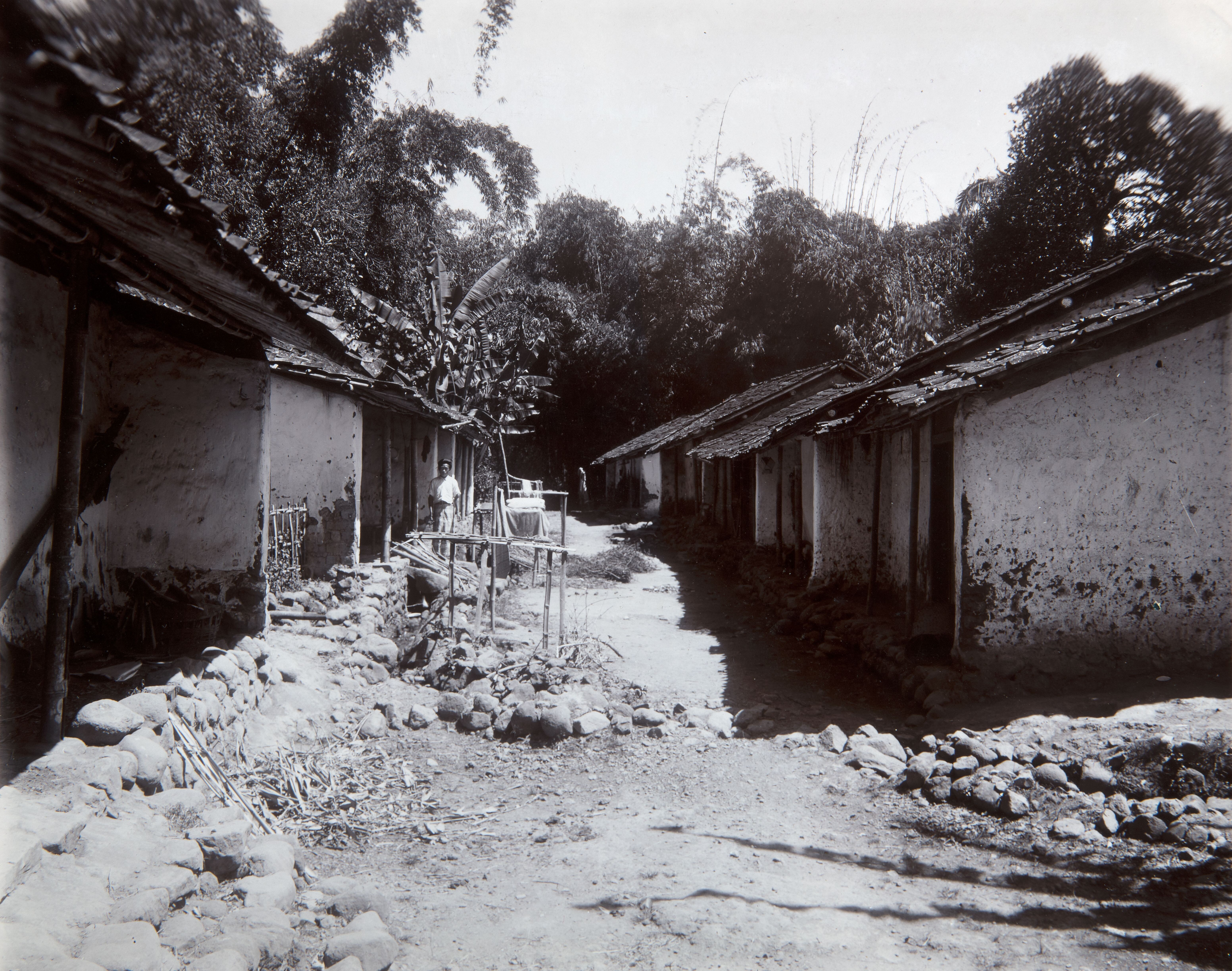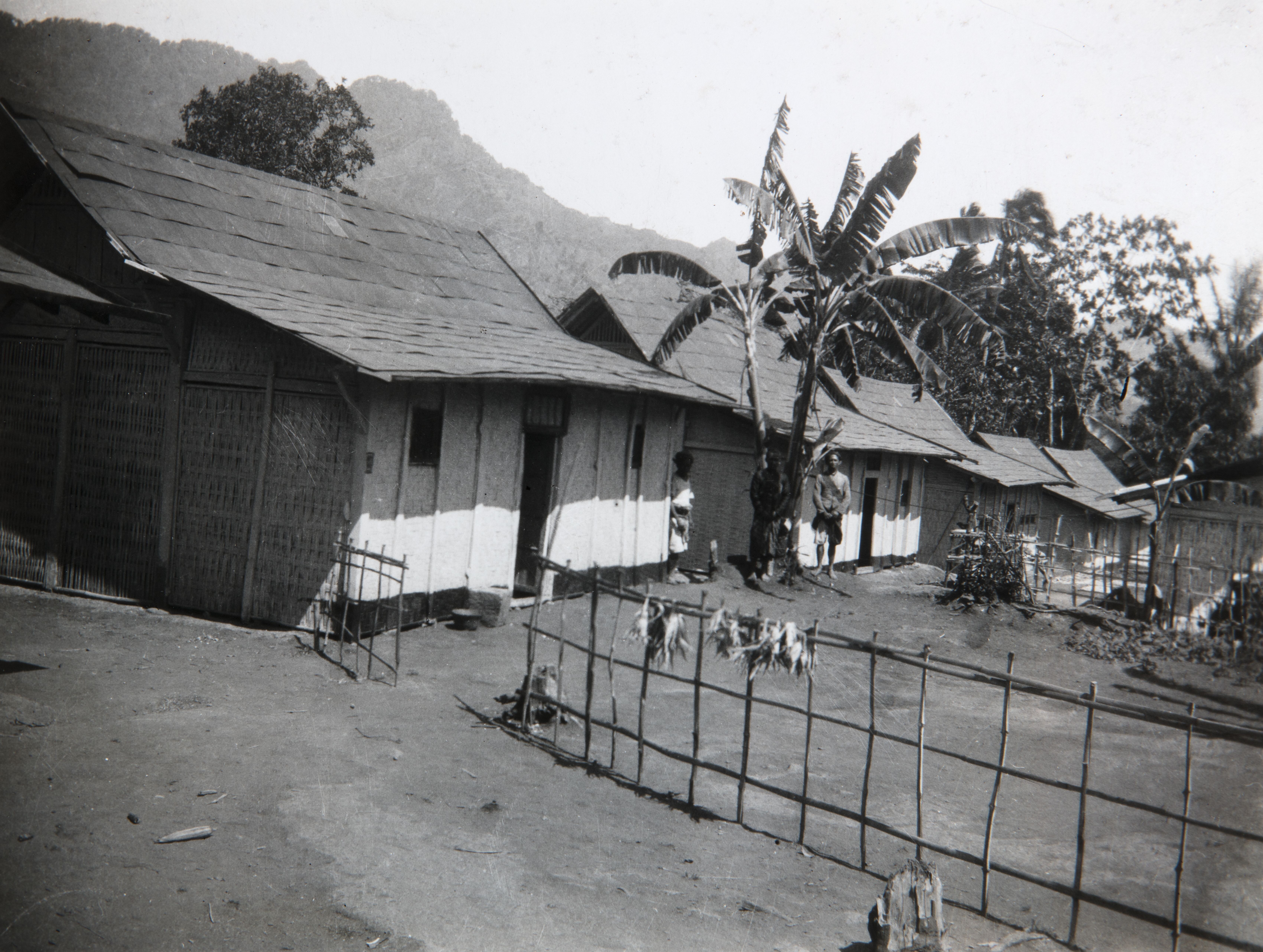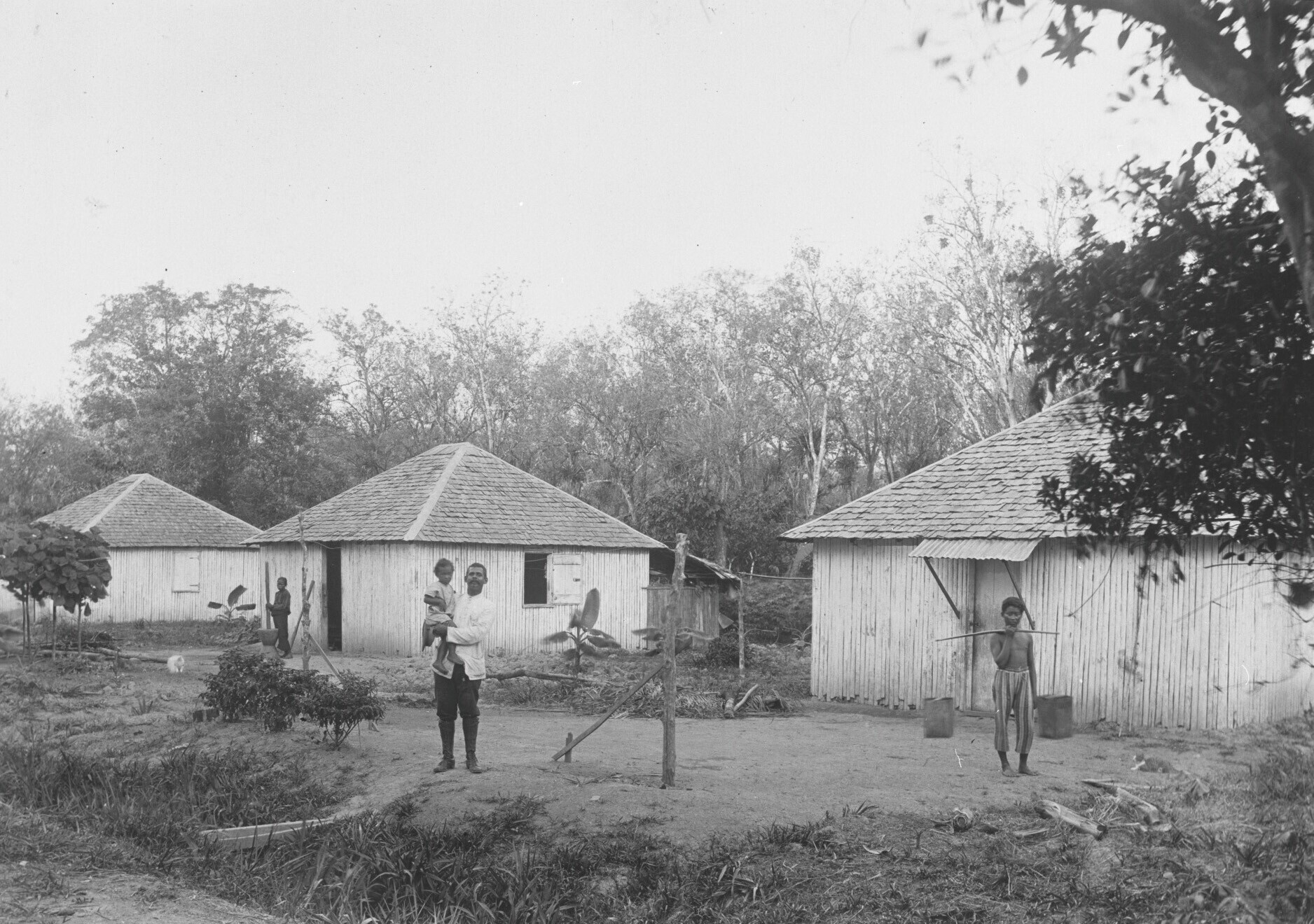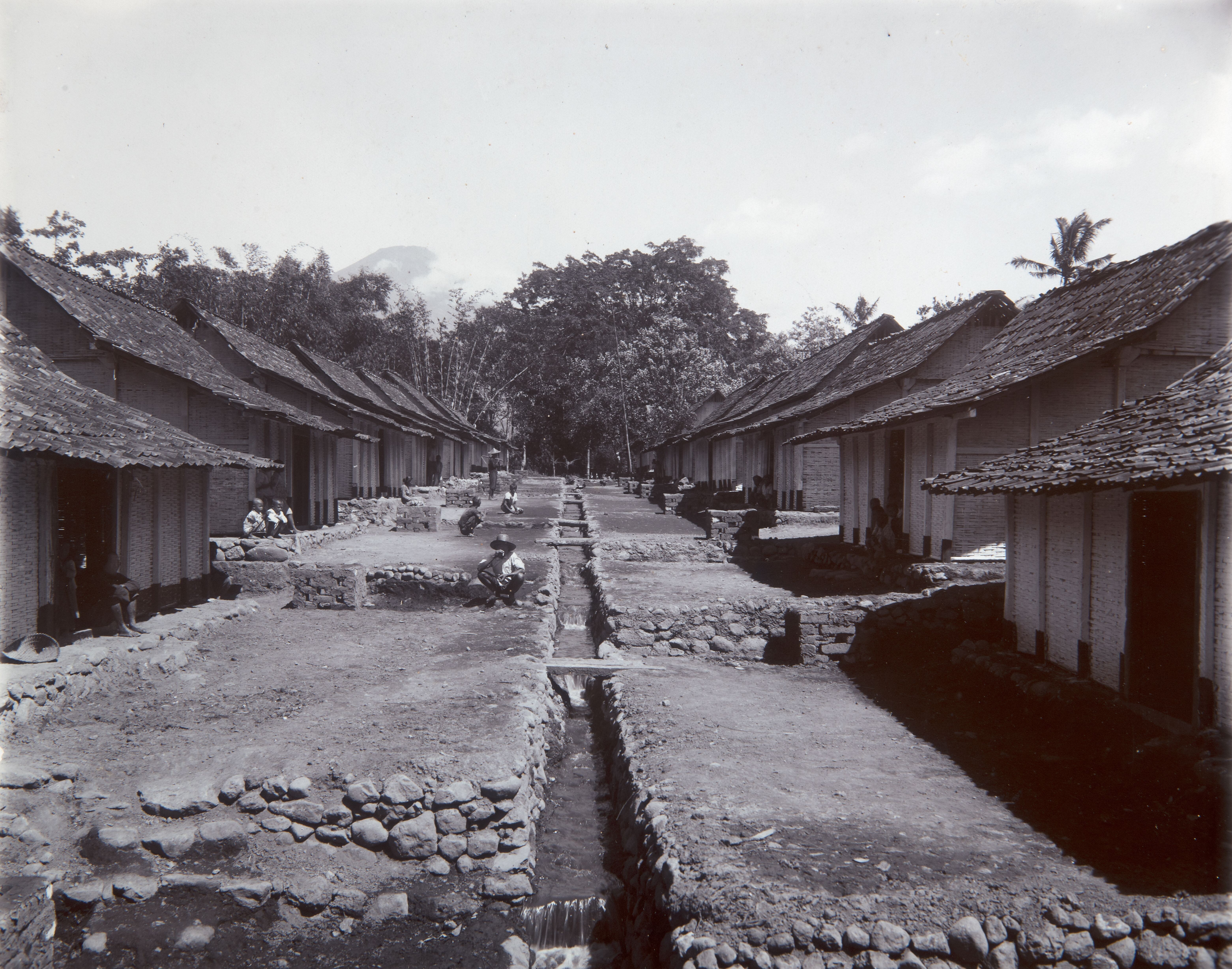 Woningen van immigranten op het terrein van plantage...