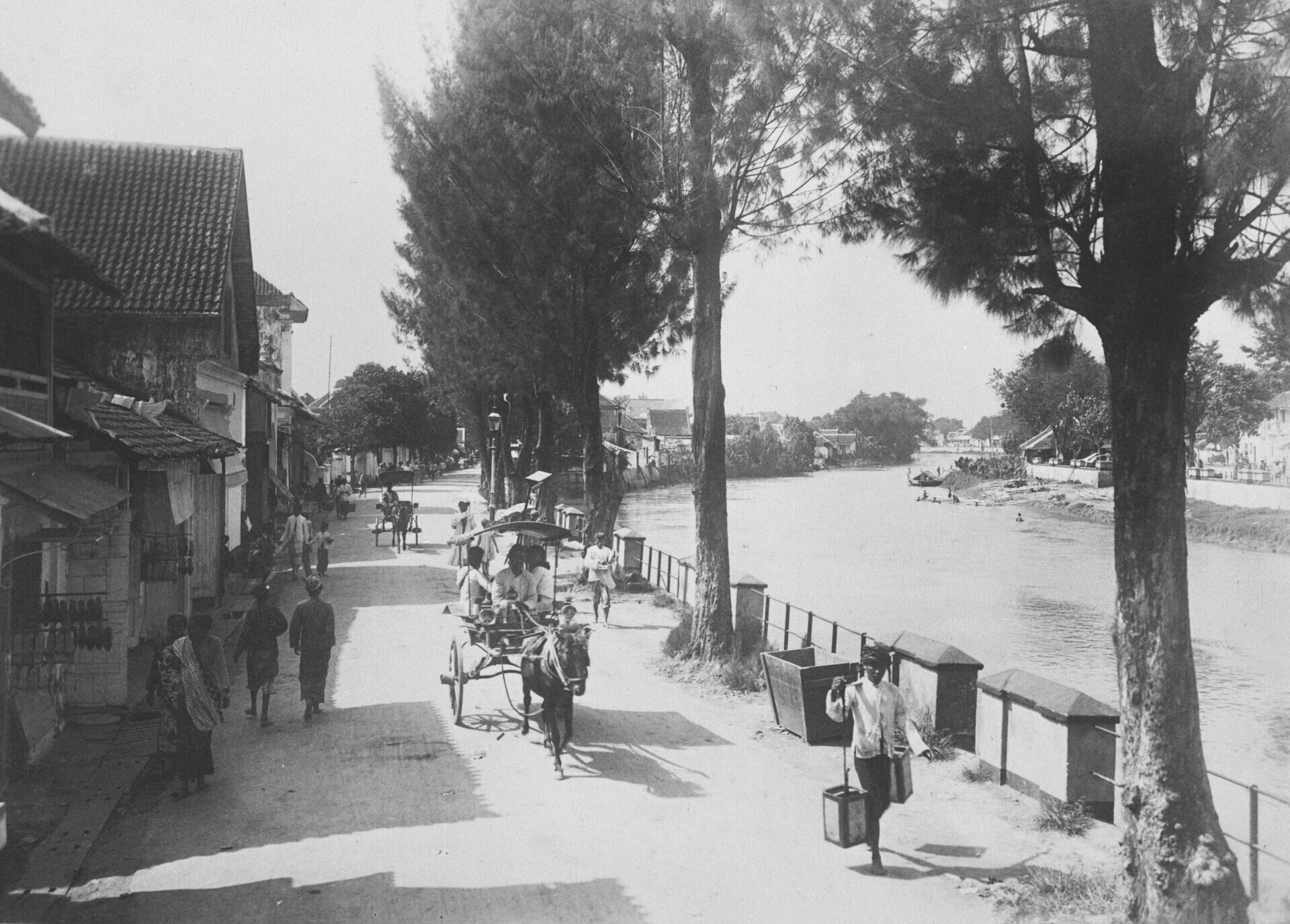 Straatgezicht langs de Kali Mas in Soerabaja