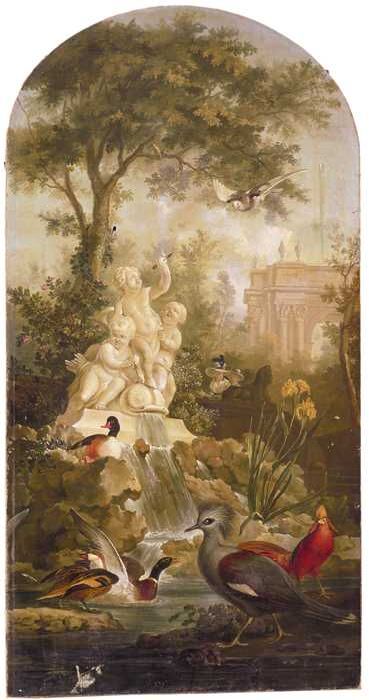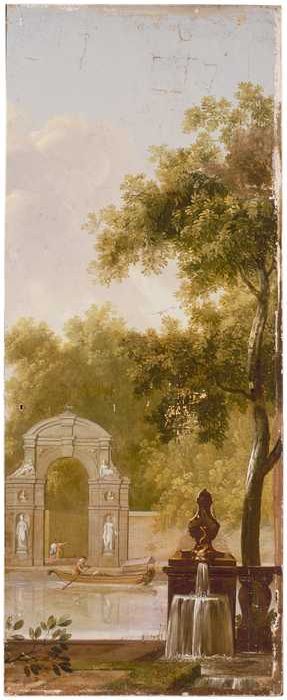 Schoorsteenstuk met voorstelling van tuin met fontei...