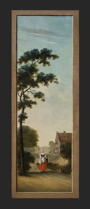 Arcadisch lokaal landschap met op voorgrond boerin m...