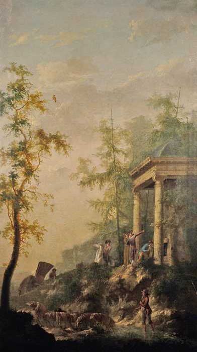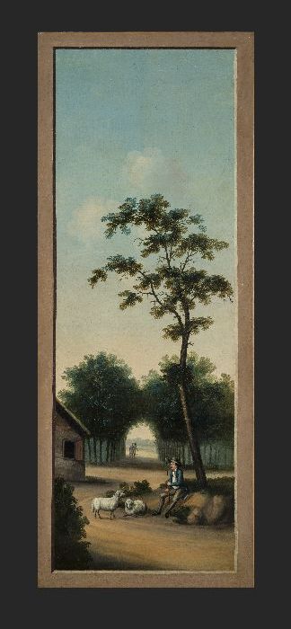 Arcadisch lokaal landschap met op voorgrond zittende...
