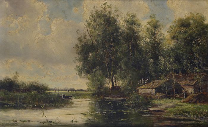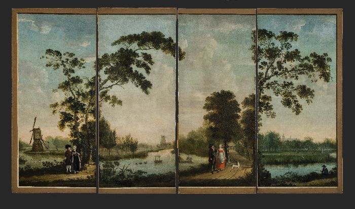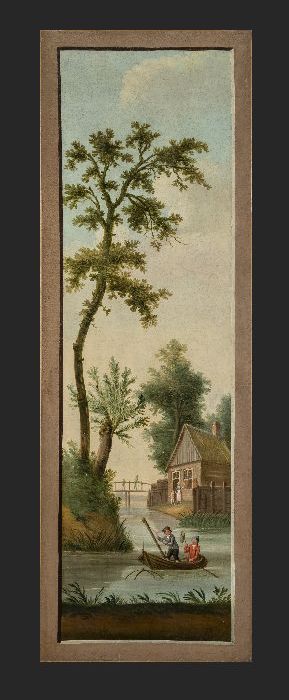 Arcadisch lokaal landschap met op voorgrond netvisse...
