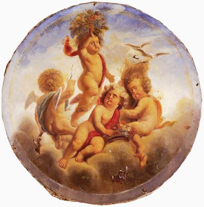 Spelende kinderen (putti) bij buste van Pan