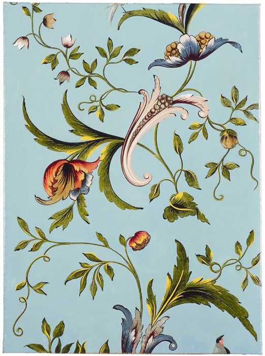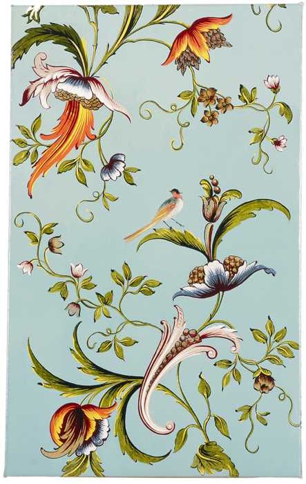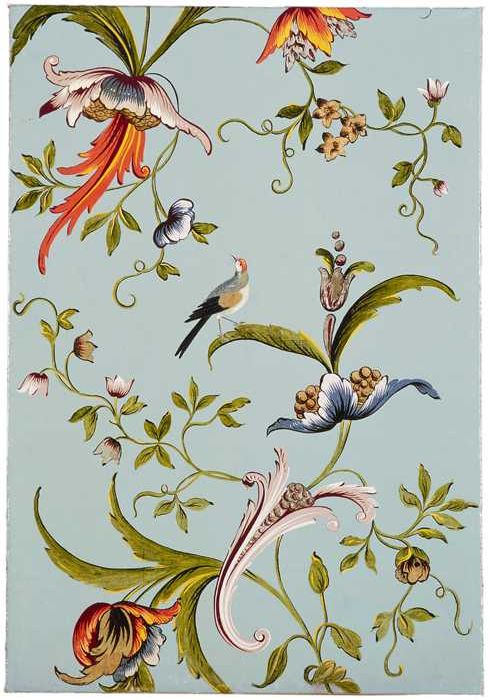 Behangsel met bloemmotieven en vogel