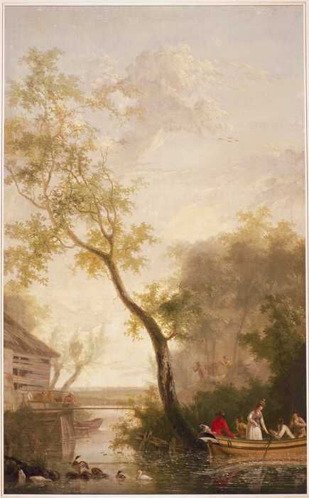 Kamerbehangsel met galant gezelschap in een roeiboot