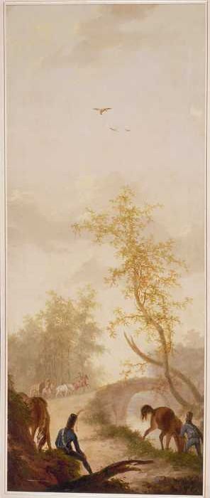 Kamerbehangsel met gezelschap en ruiter bij tempeltj...