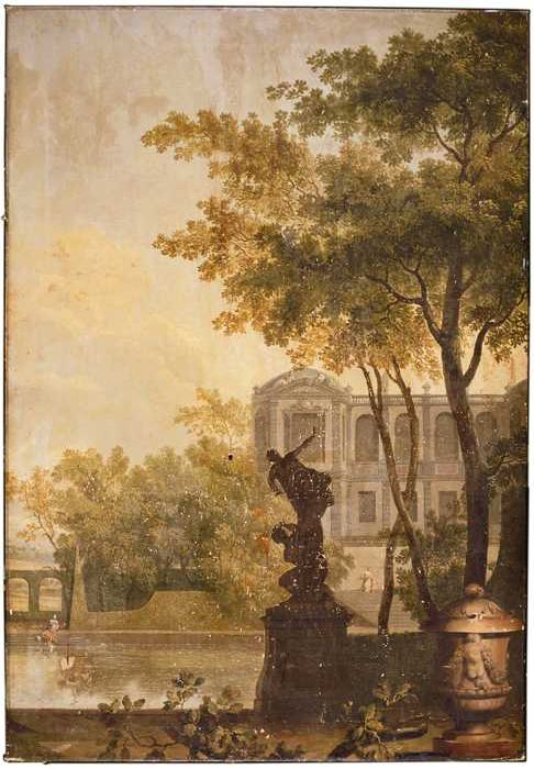 Behangsel met voorstelling parklandschap met beeldho...