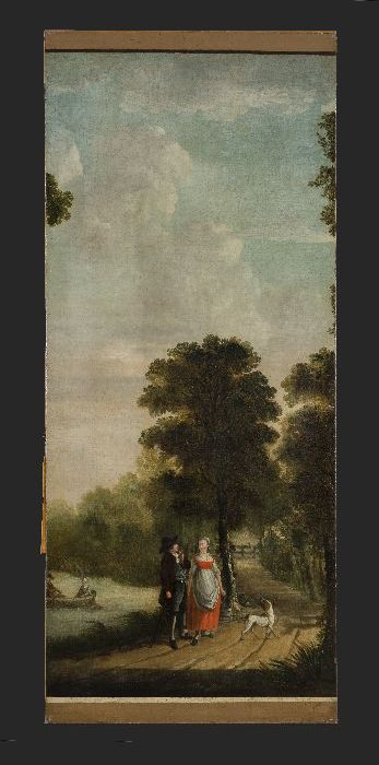 Behangsel met voorstelling parkachtig landschap met ...