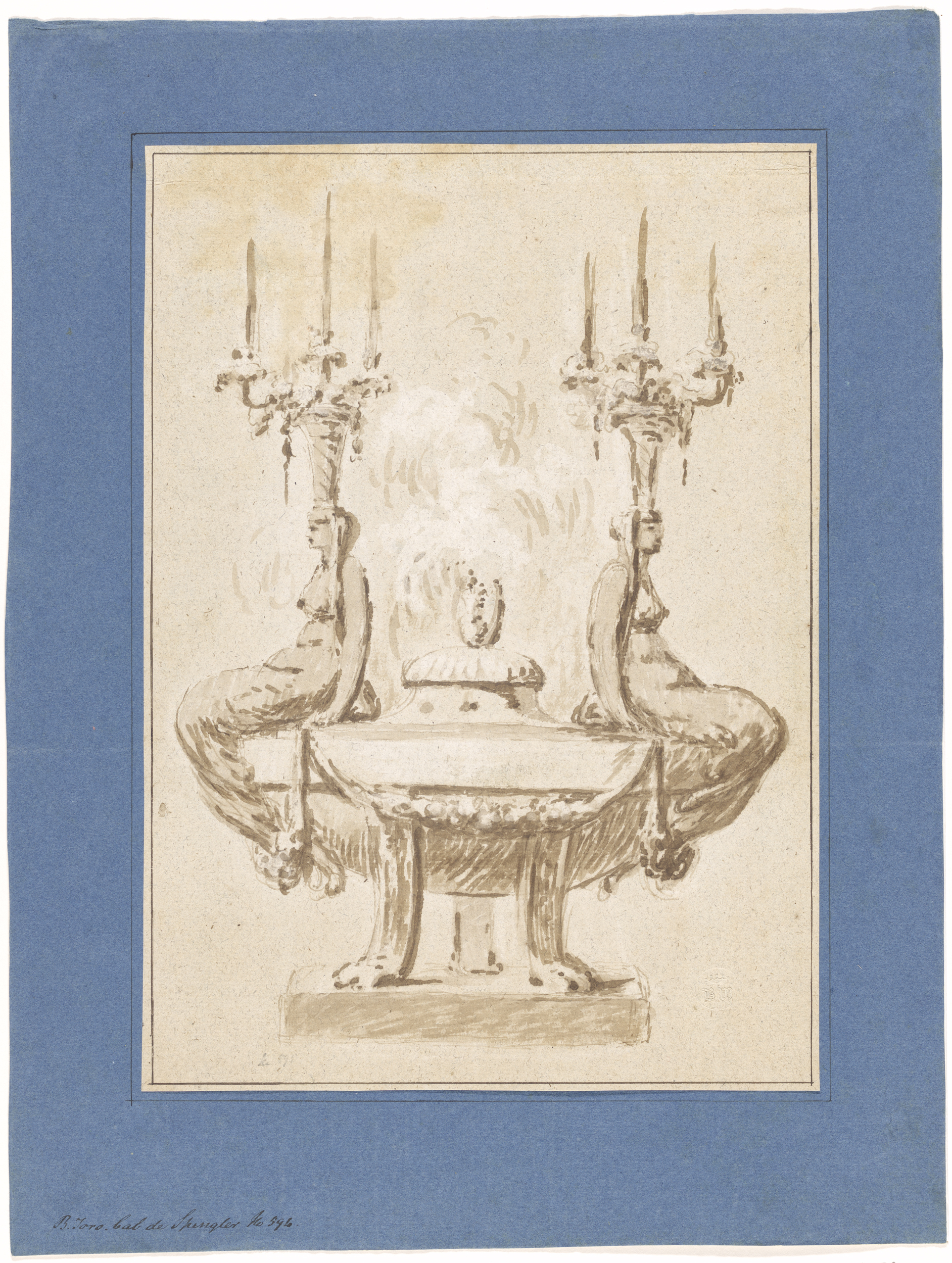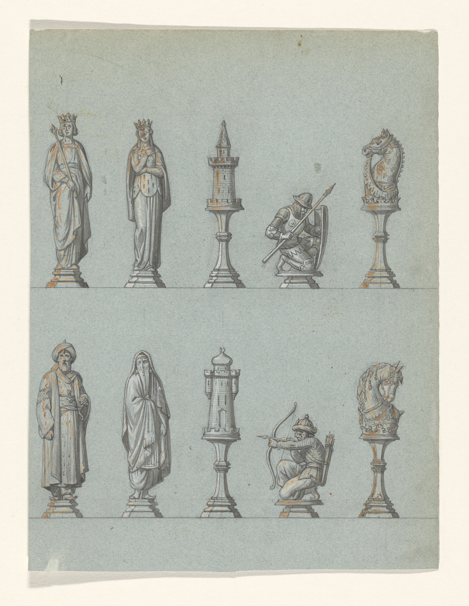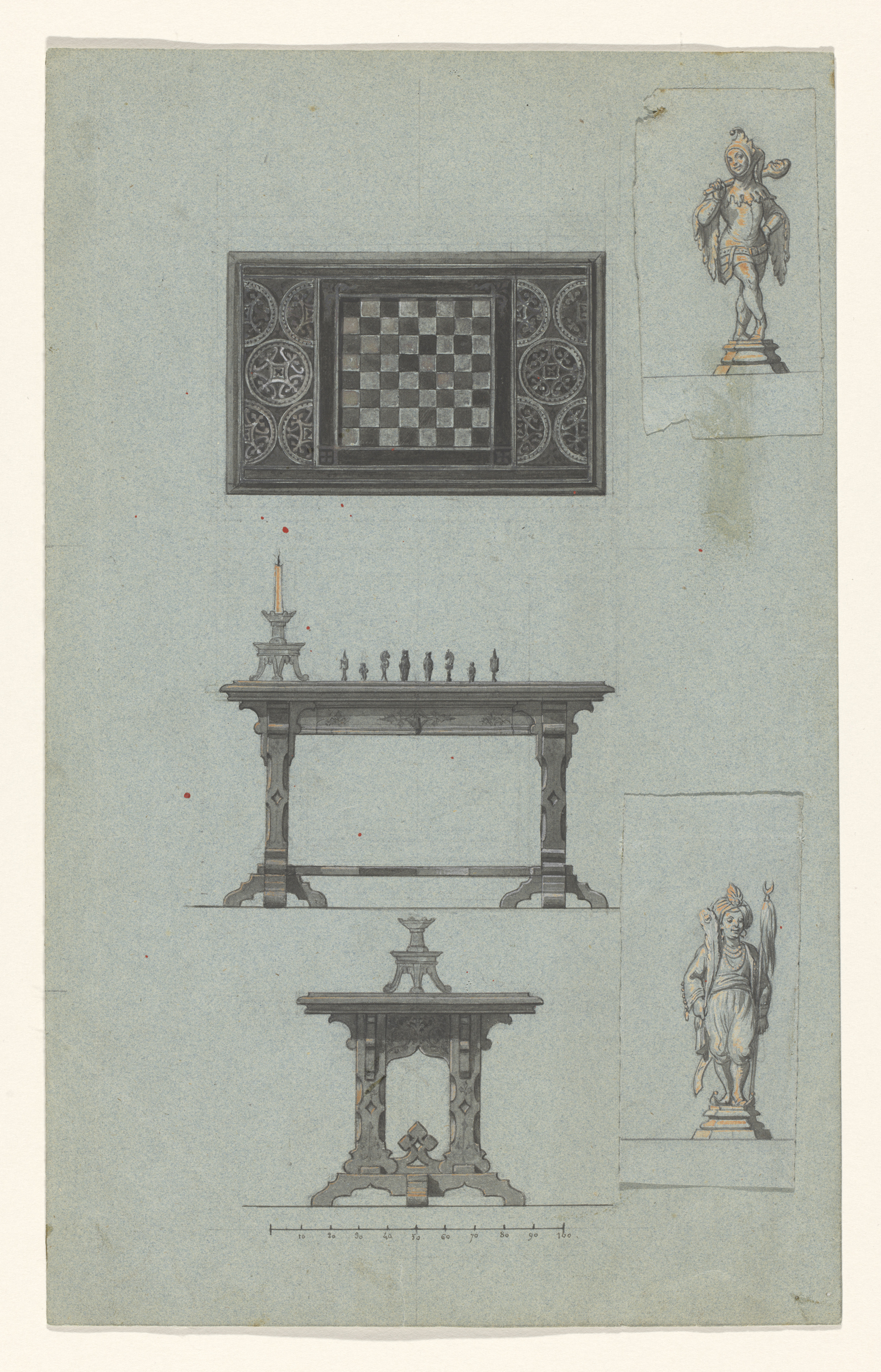 Ontwerp voor een schaaktafel met een kandelaar, met ...