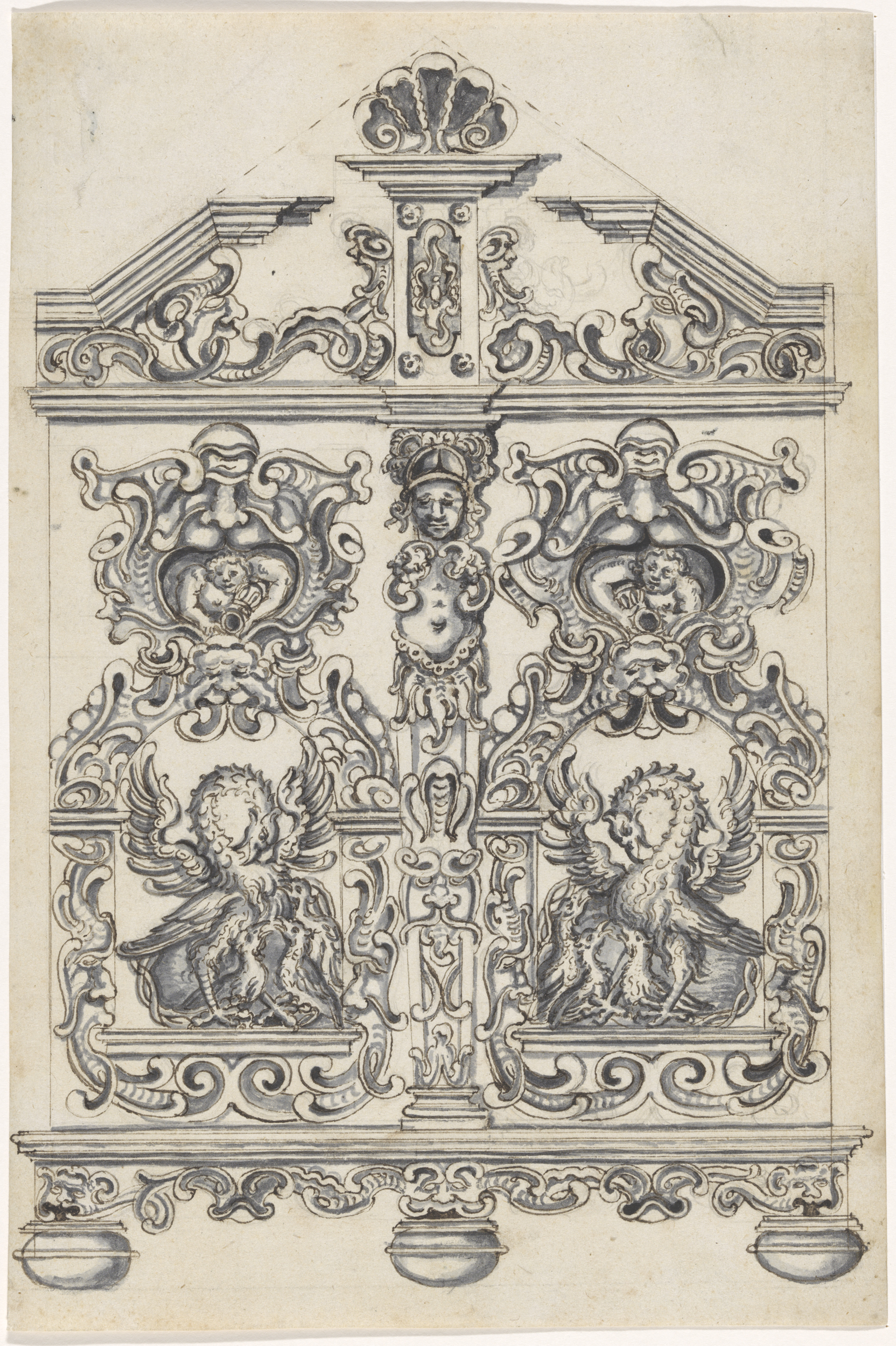 Tafel met een voet in de vorm van een gevleugelde ze...