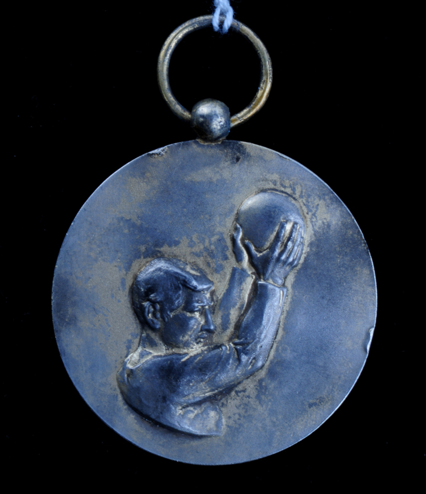 Medaille van metaal voorstellende een korfballer 1920