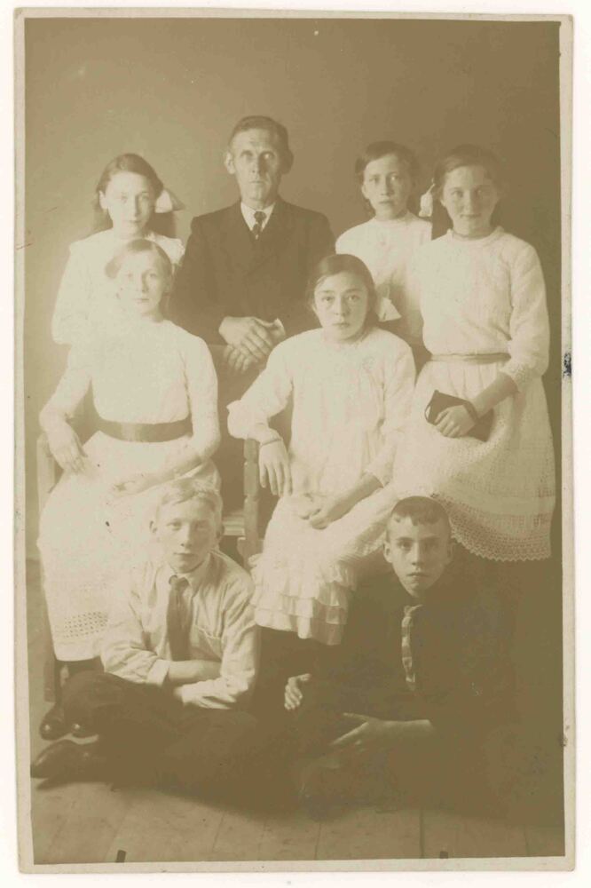Foto, voorstellende familie foto van fietsclub, o.l....