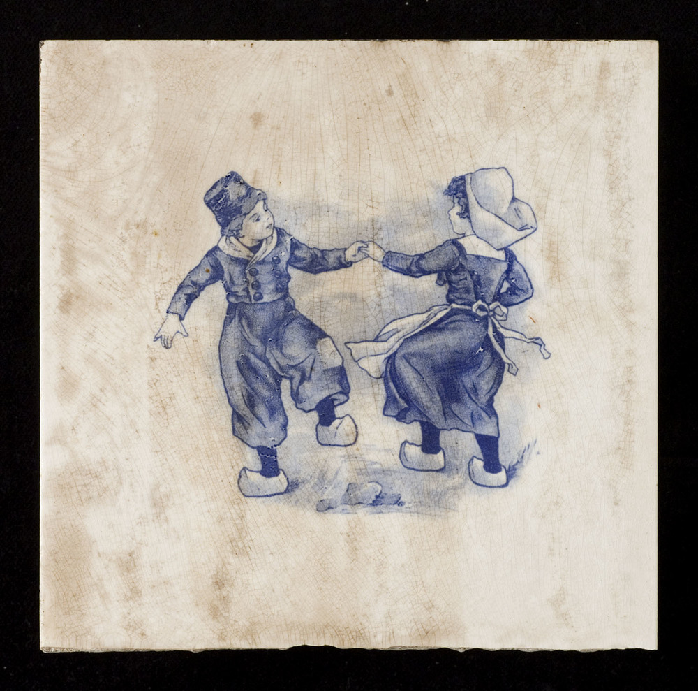 Tegel in transfer-techniek, met voorstelling: dansen...