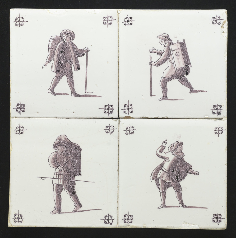 Tegel van keramiek met tinglazuur, voorstellende: or...