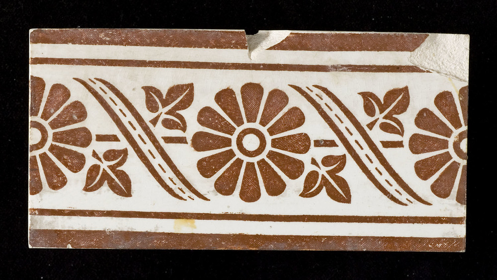 Randtegel in transfer-techniek, met voorstelling: ro...