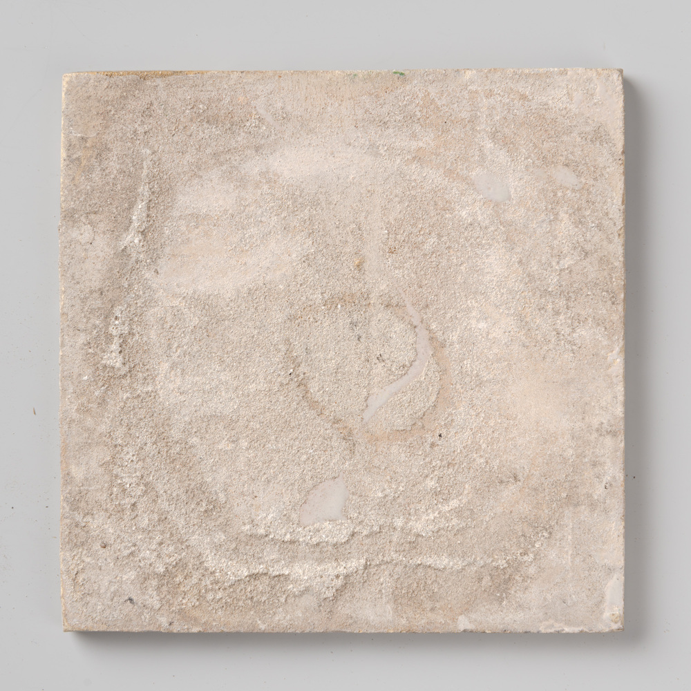 Tegel in tinglazuur, voorstellende decor 'Vierkant r...