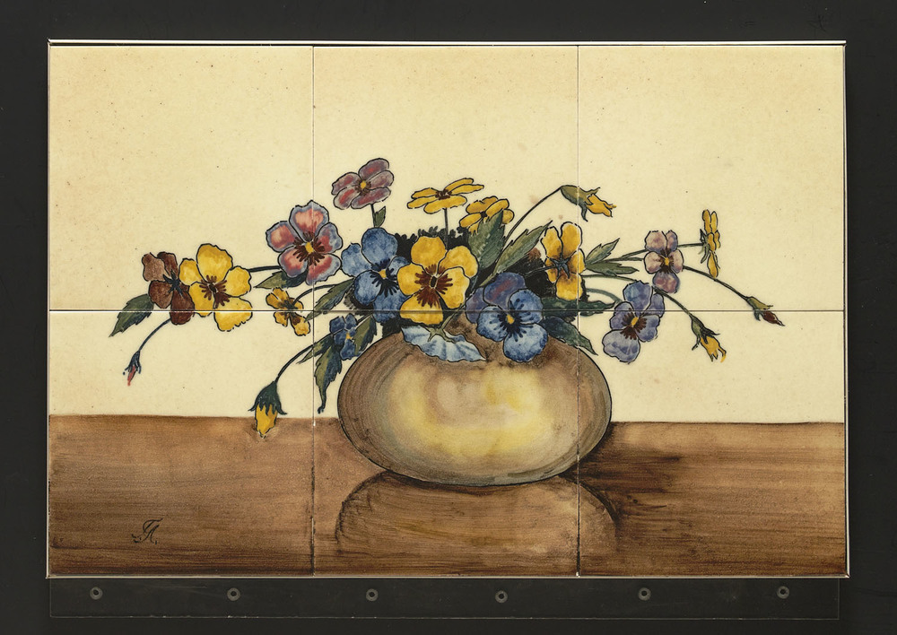 Tegel in tinglazuur, voorstellende decor 'Kraalbloem...