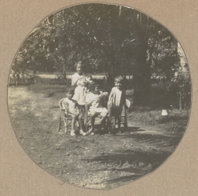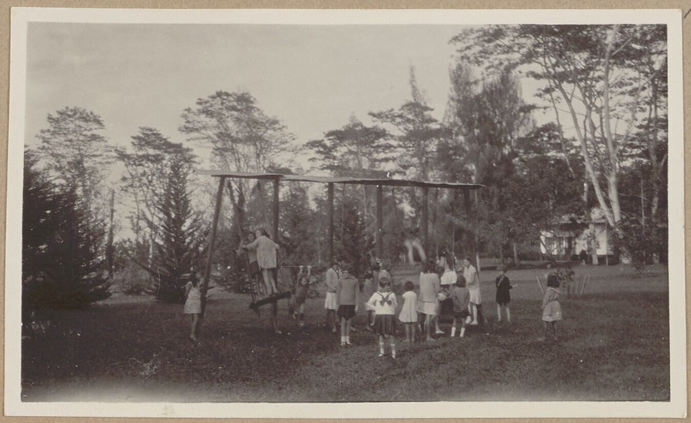 Kinderen in speeltuin in kindervacantiekolonie