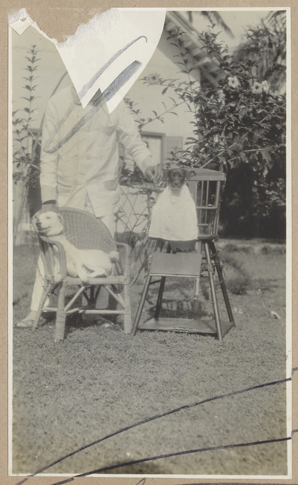 Man bij twee honden op stoelen