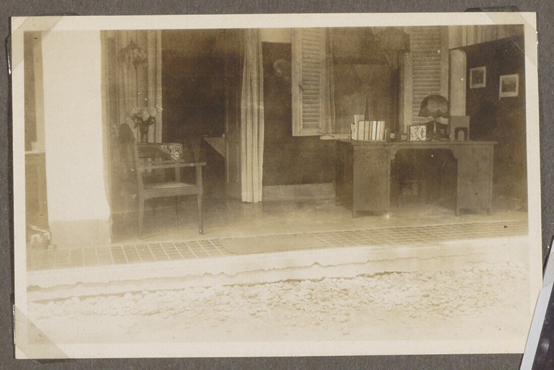 Een bureau op een veranda van een woning