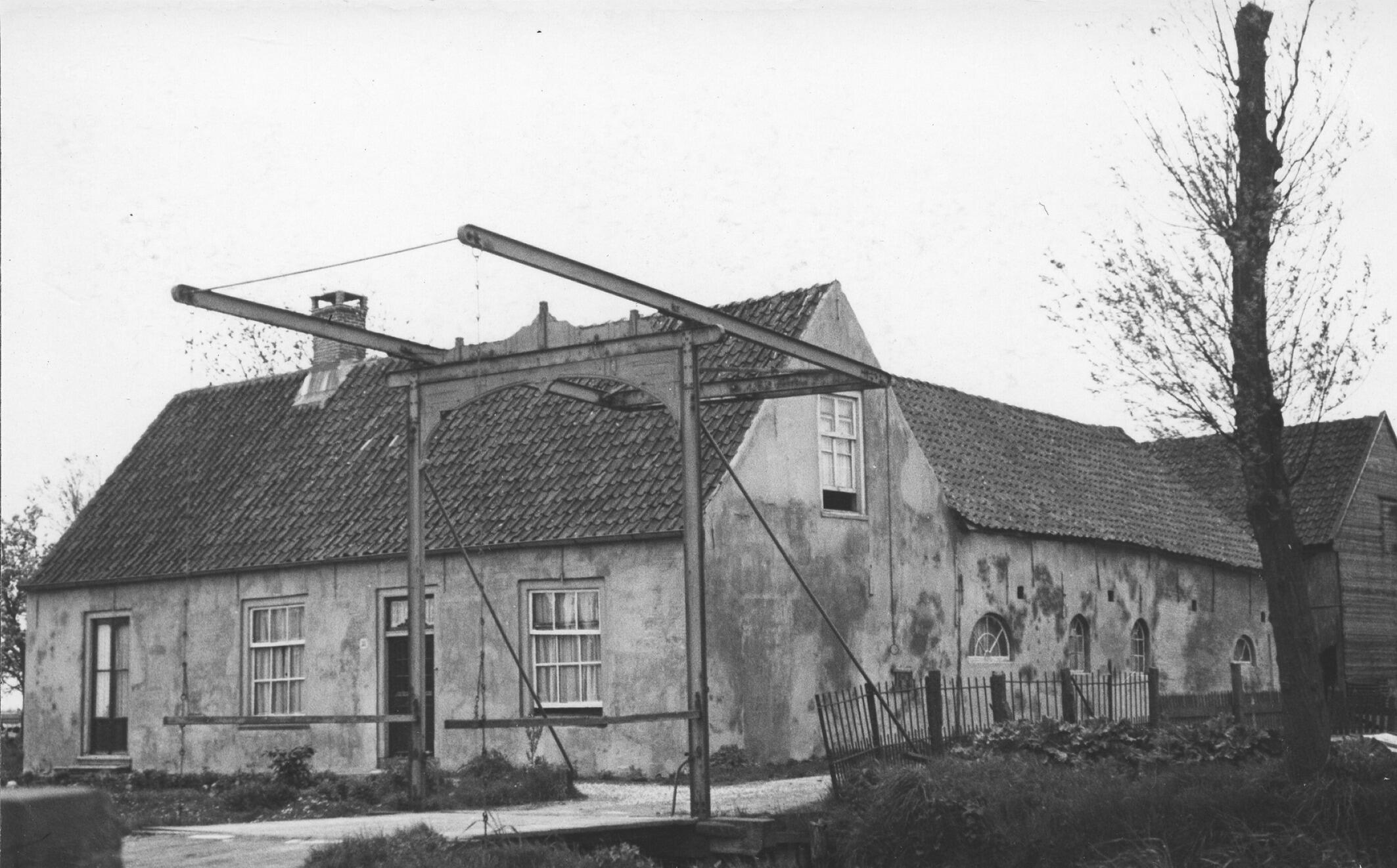 Boerderij en ophaalbrug, Nootdorp, 1937 (zwart-wit n...