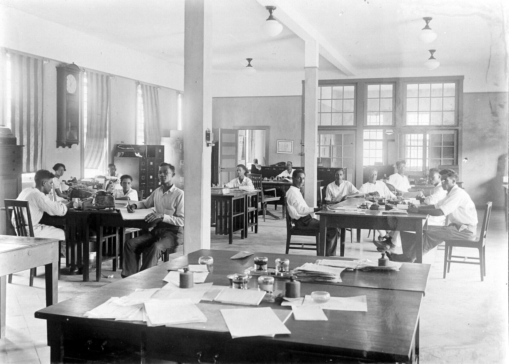 Kantoorpersoneel van de Bauxiet Maatschappij Moengo