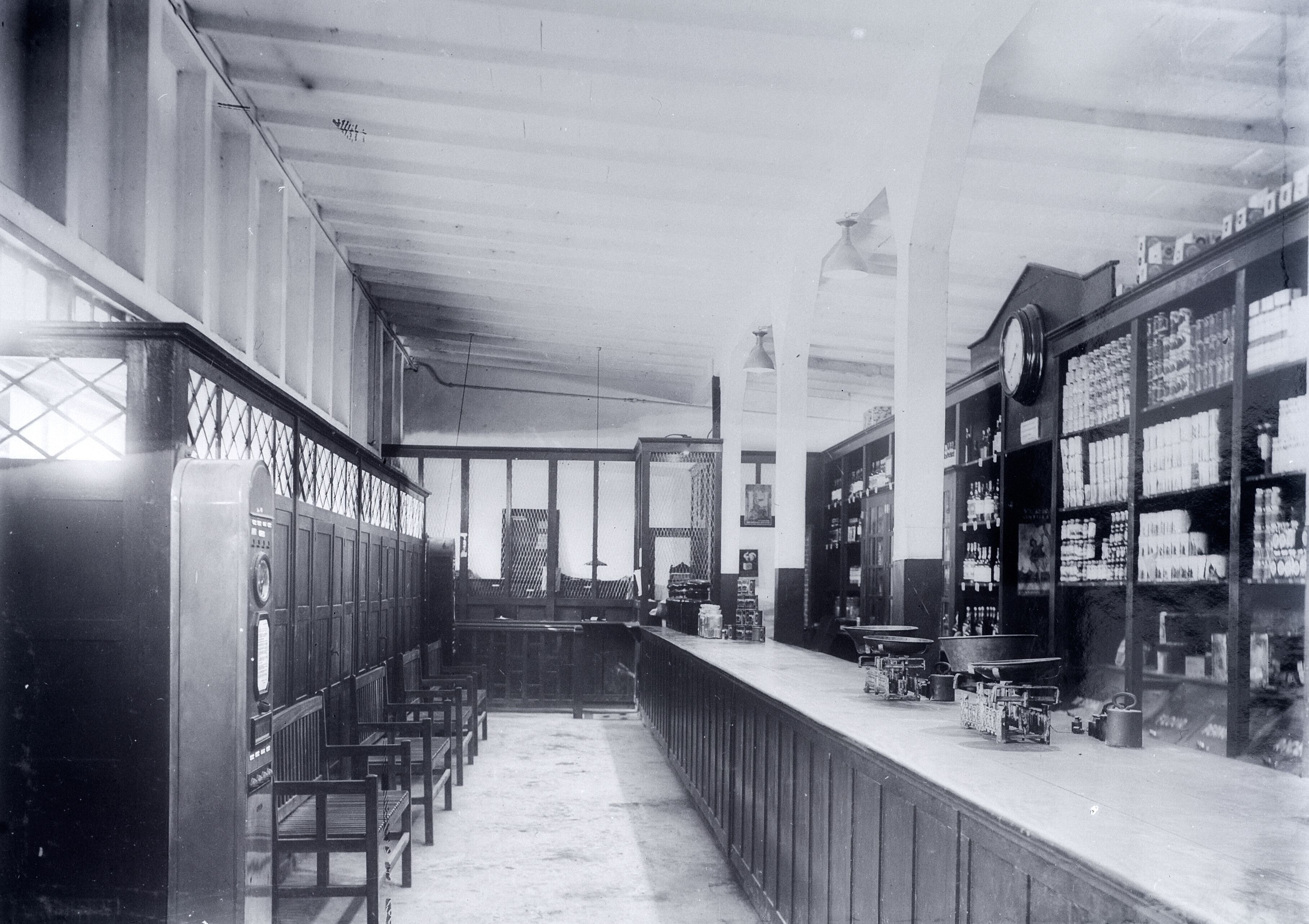 Interieur van de winkel op het terrein van de Bauxie...
