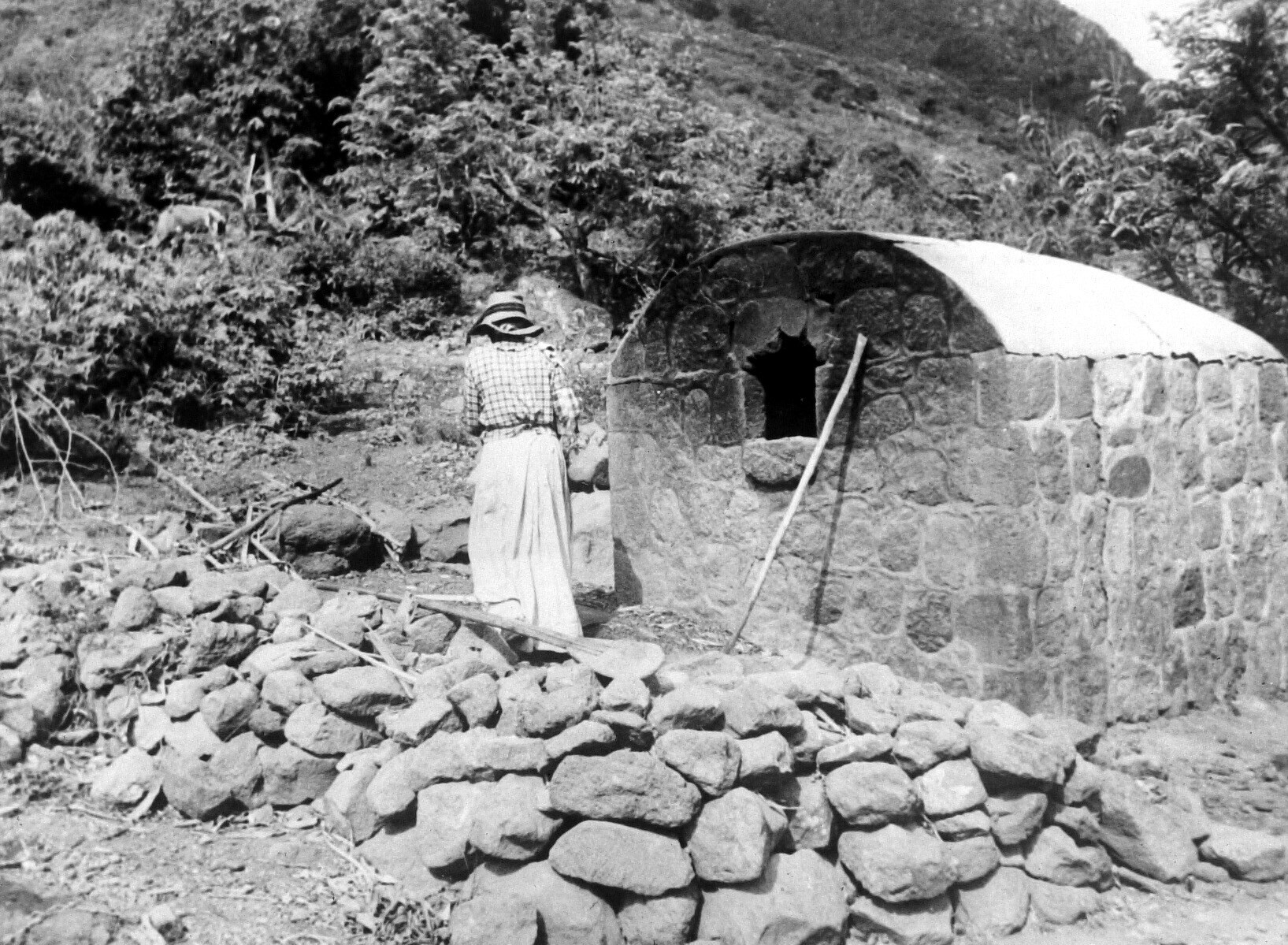 Een vrouw is aan het bakken in een stenen uiten oven