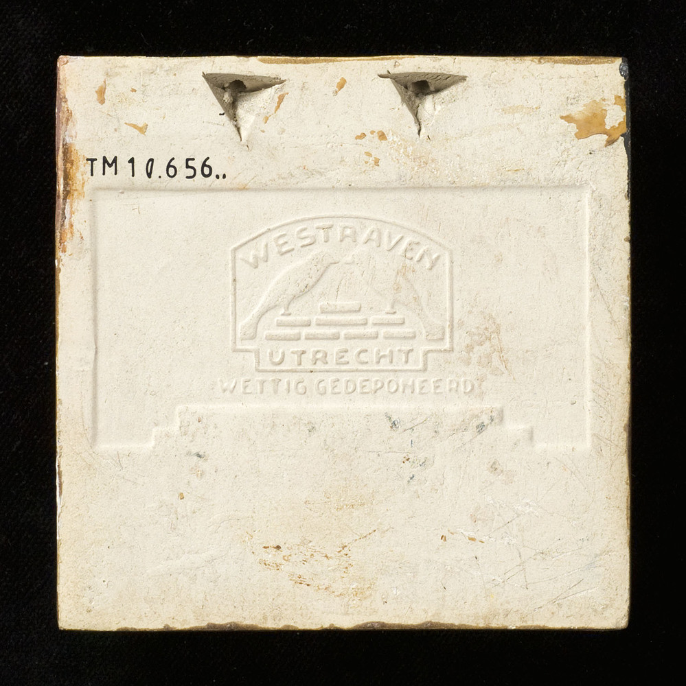 tegel van aardewerk in koudlak, voorstellende: verst...