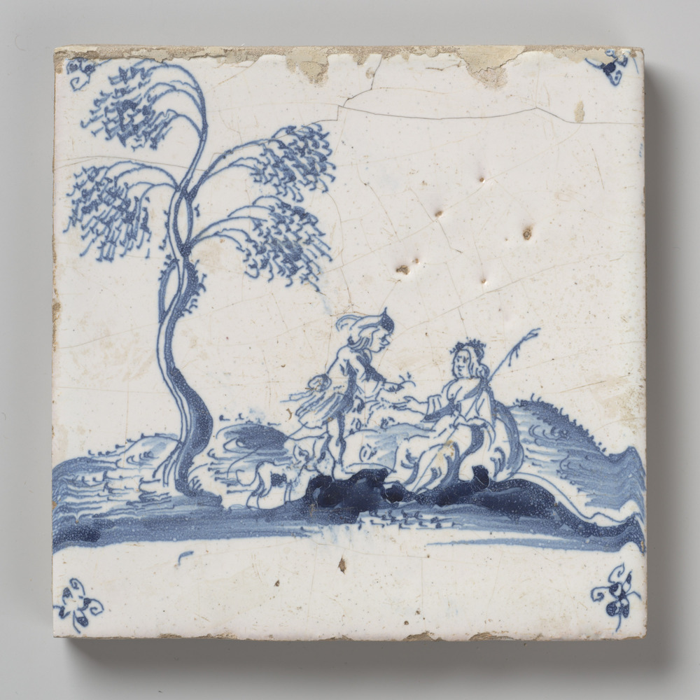 tegel van aardewerk met tinglazuur, voorstellende: P...