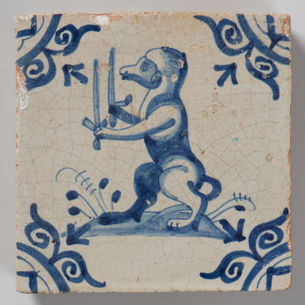 tegel van aardewerk met tinglazuur, voorstellende: v...