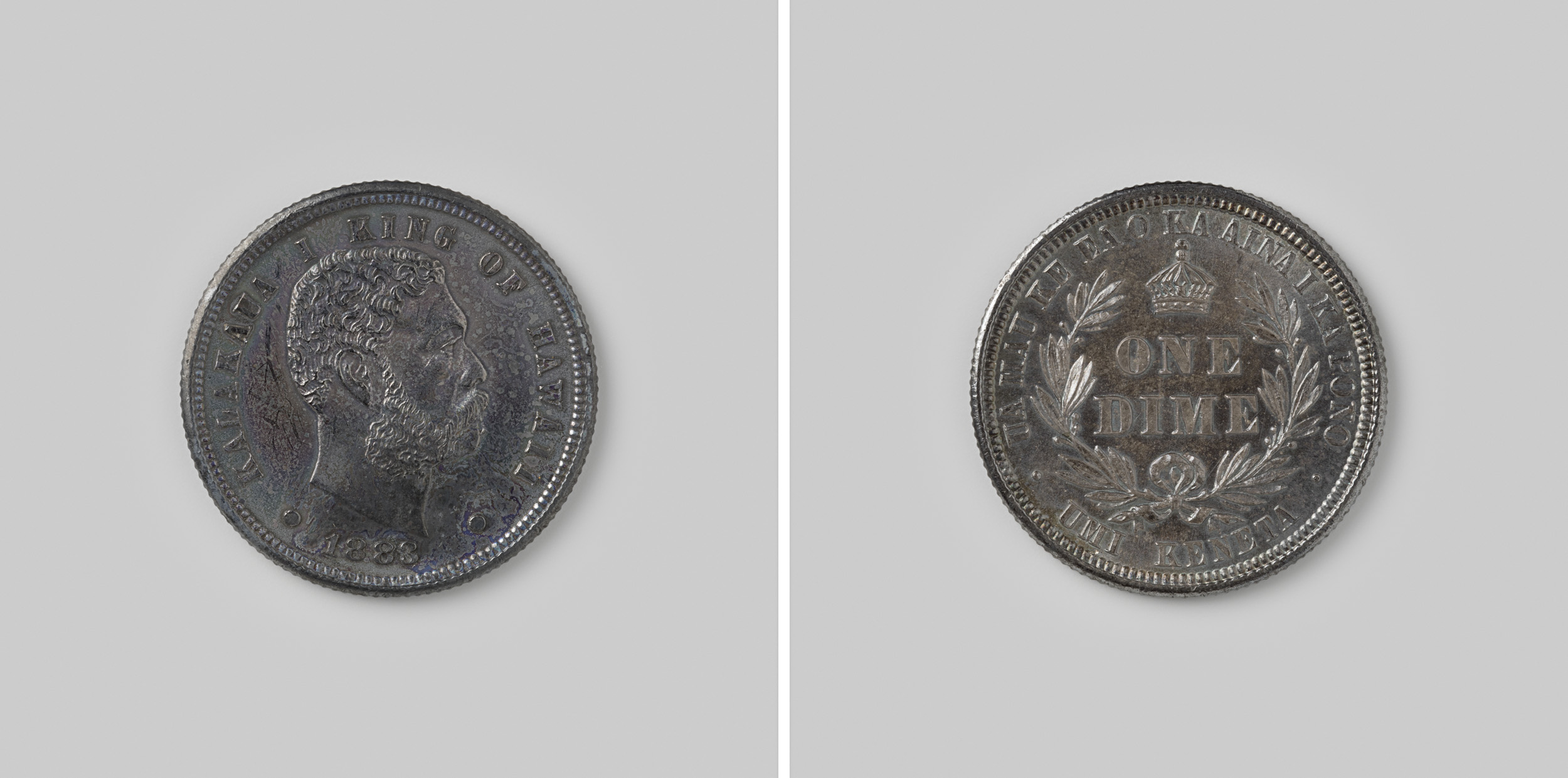 Dime [=1/10 dollar] of 10 kuneta uit Hawaii of Sandw...