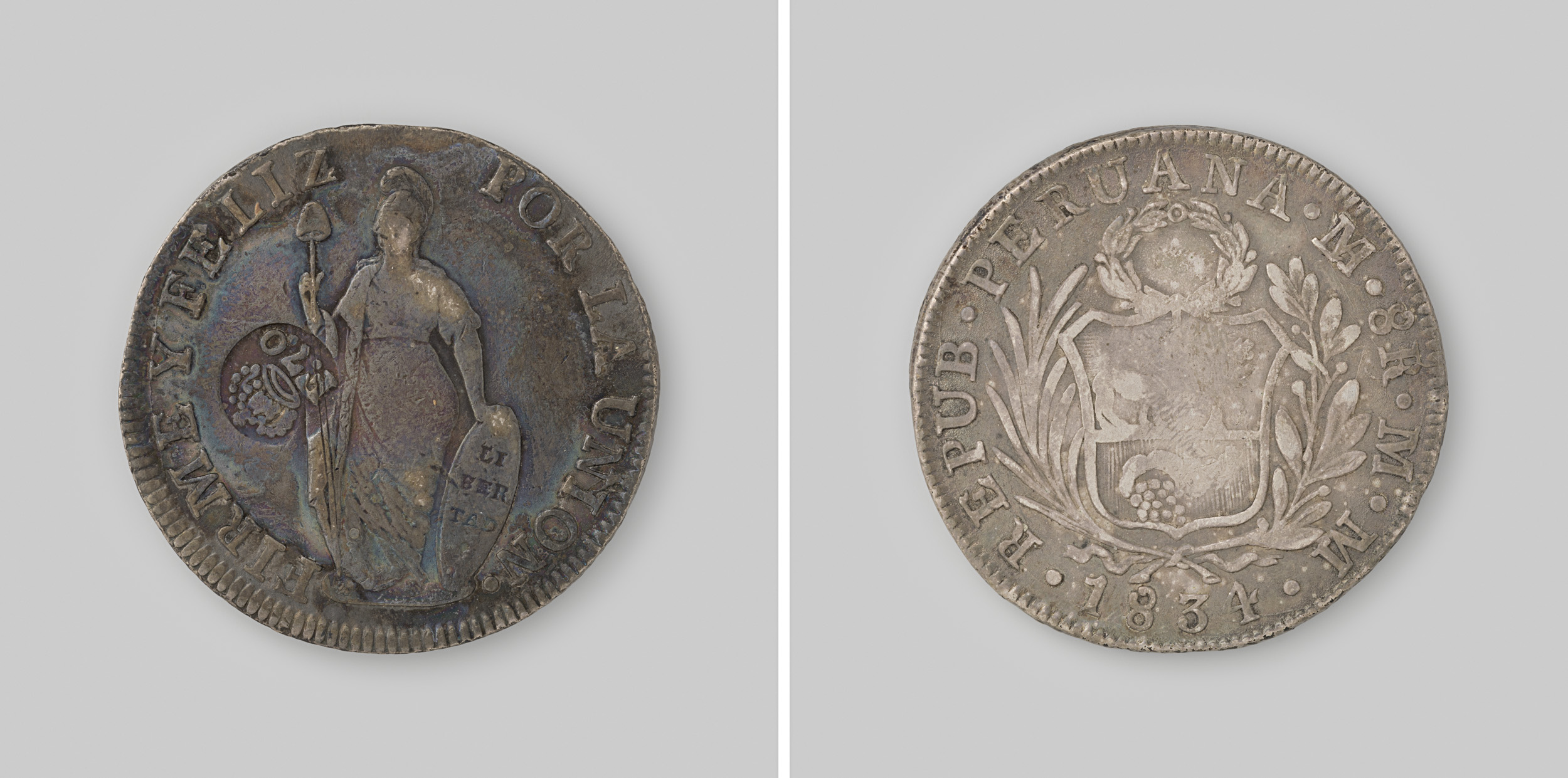 Kwart reaal uit Peru van koning Ferdinand VII,1820