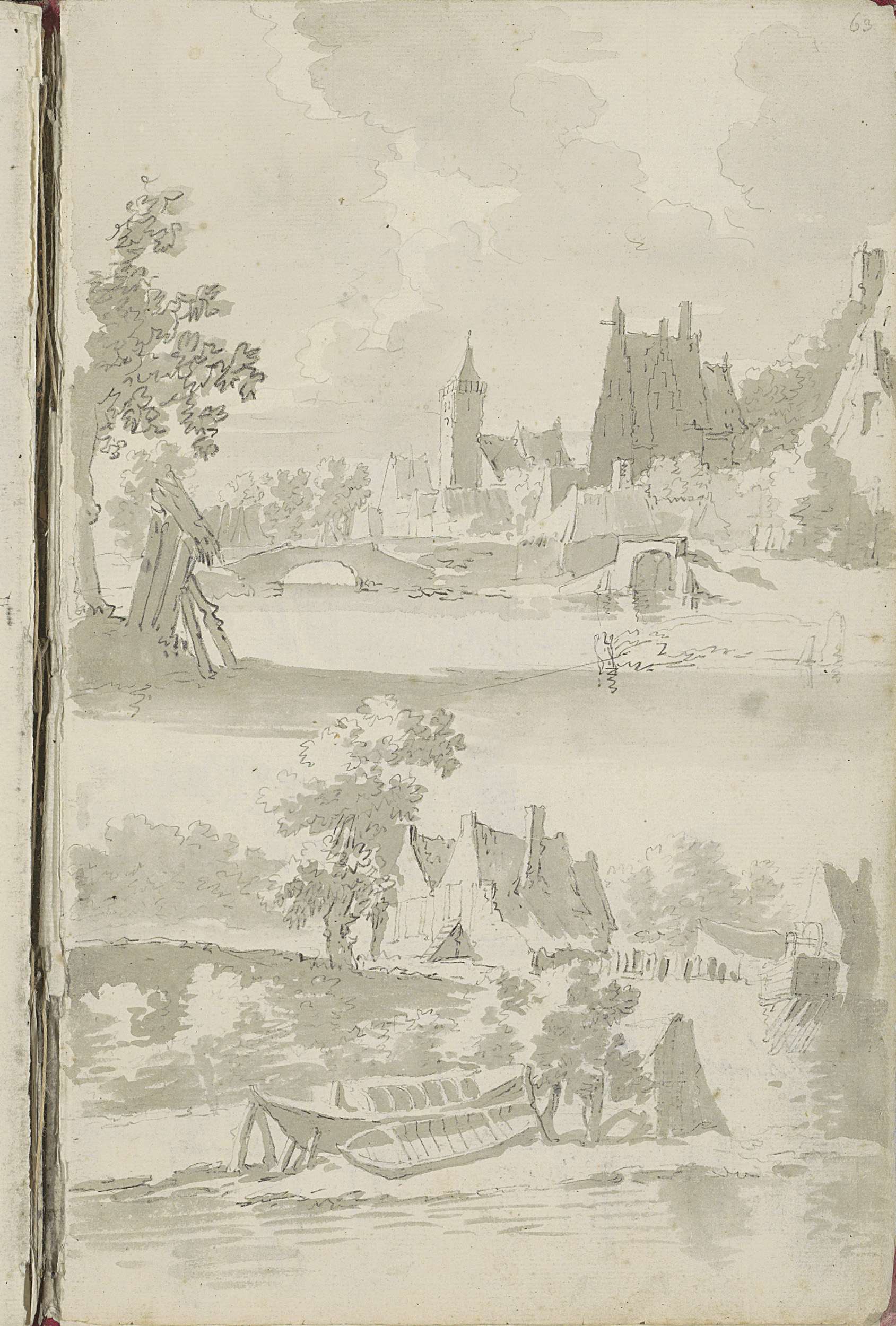Gezicht op een ommuurd gebouw en een stadsgezicht me...