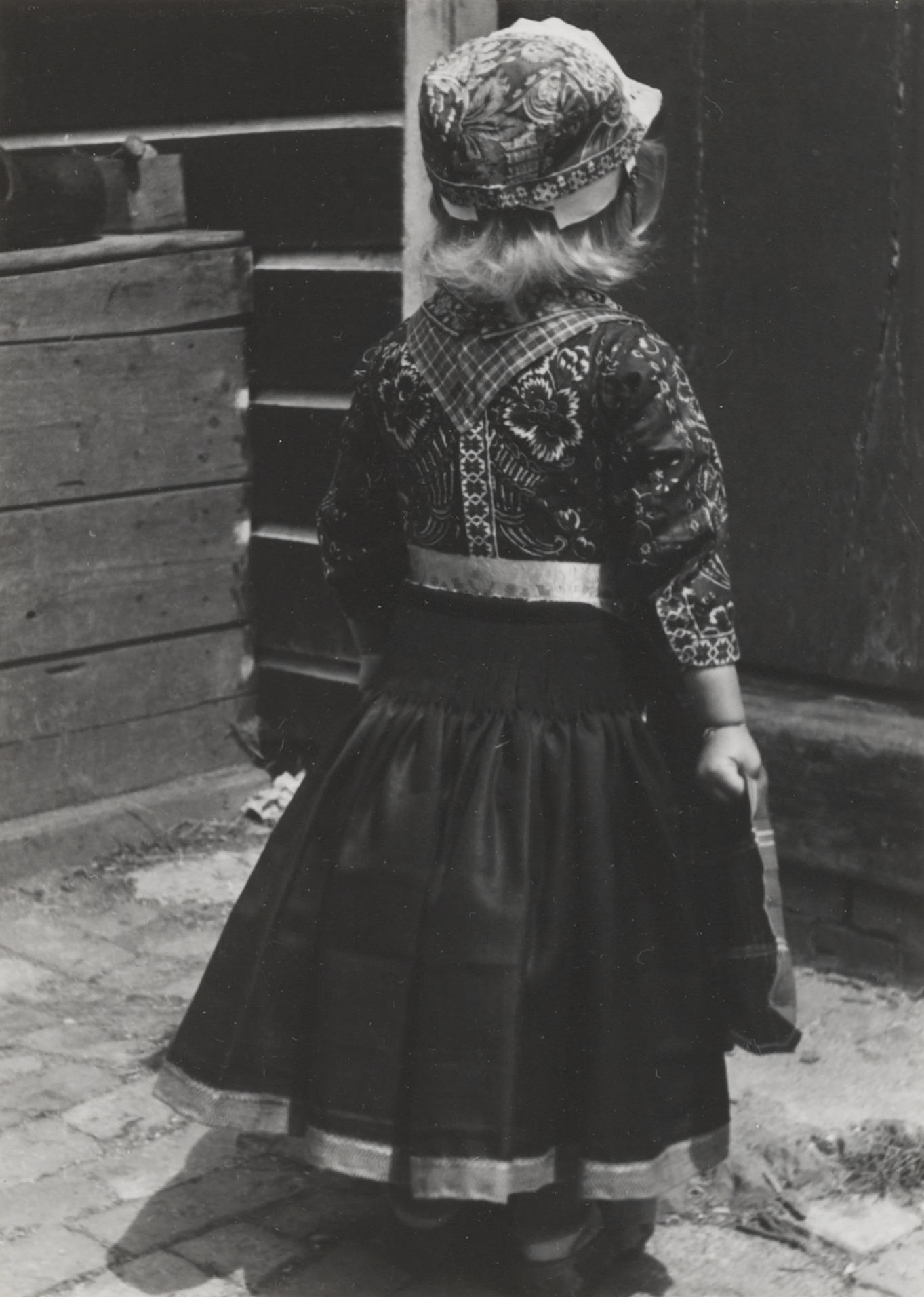 Eefje Schipper in Marker dracht, 1943 (zwart-wit foto)