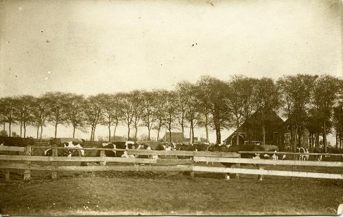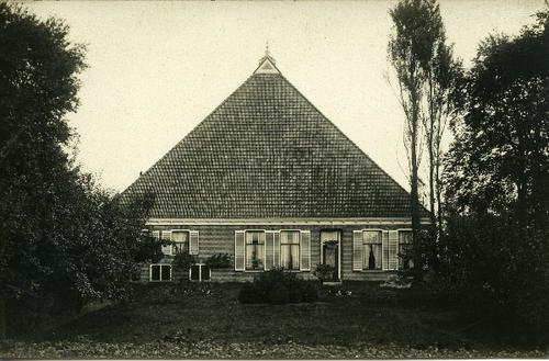 Prentbriefkaart in sepia van een stelpboerderij met ...