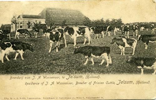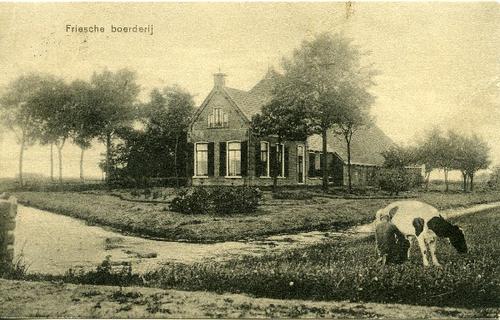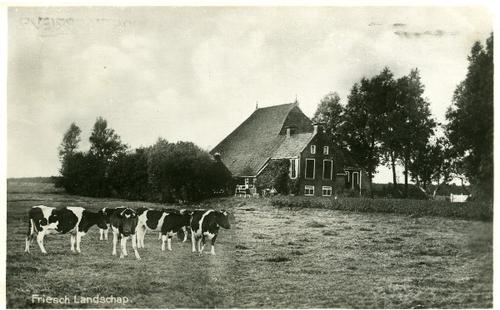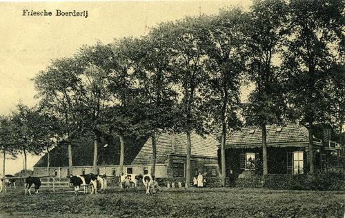 Prentbriefkaart in kleur van een stelpboerderij met ...