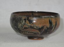 bruine kom op hoge voet met fraaie glazuren