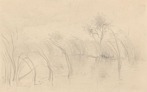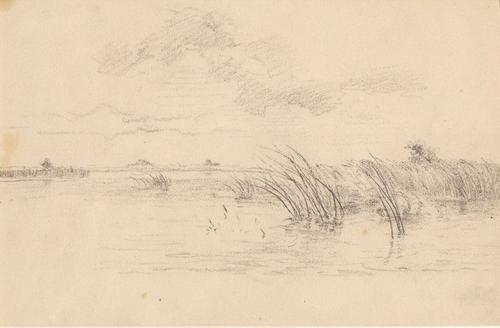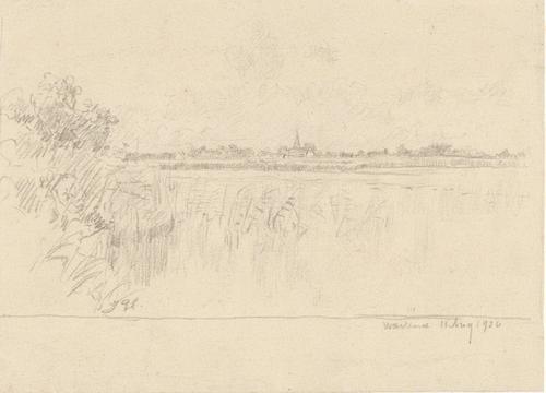 Tekening van landschap met avondwolken