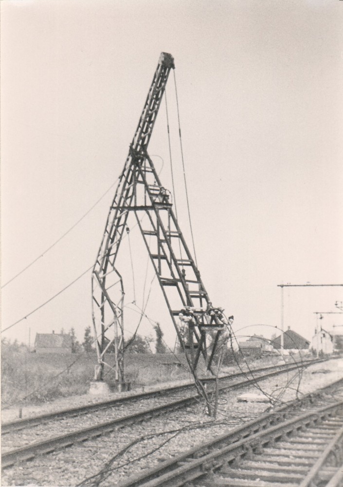 Oorlogsschade aan het spoor bij hedel.