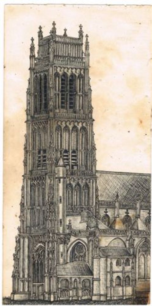 pentekening.Sint Maartenstoren met deel van het schi...