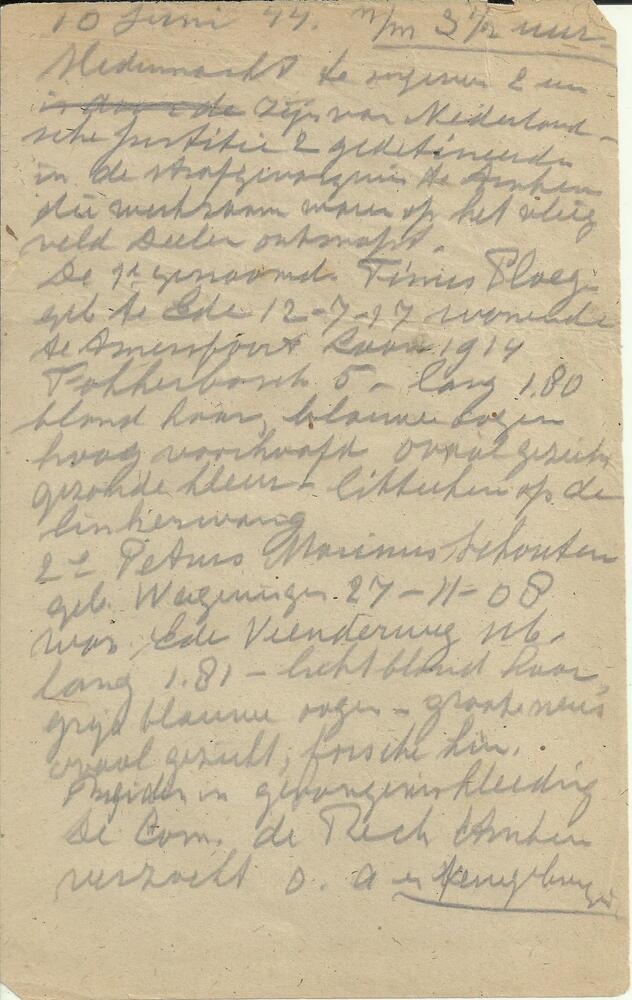 Handgeschreven alarmeringsbericht, 10 juni 1944, bet...