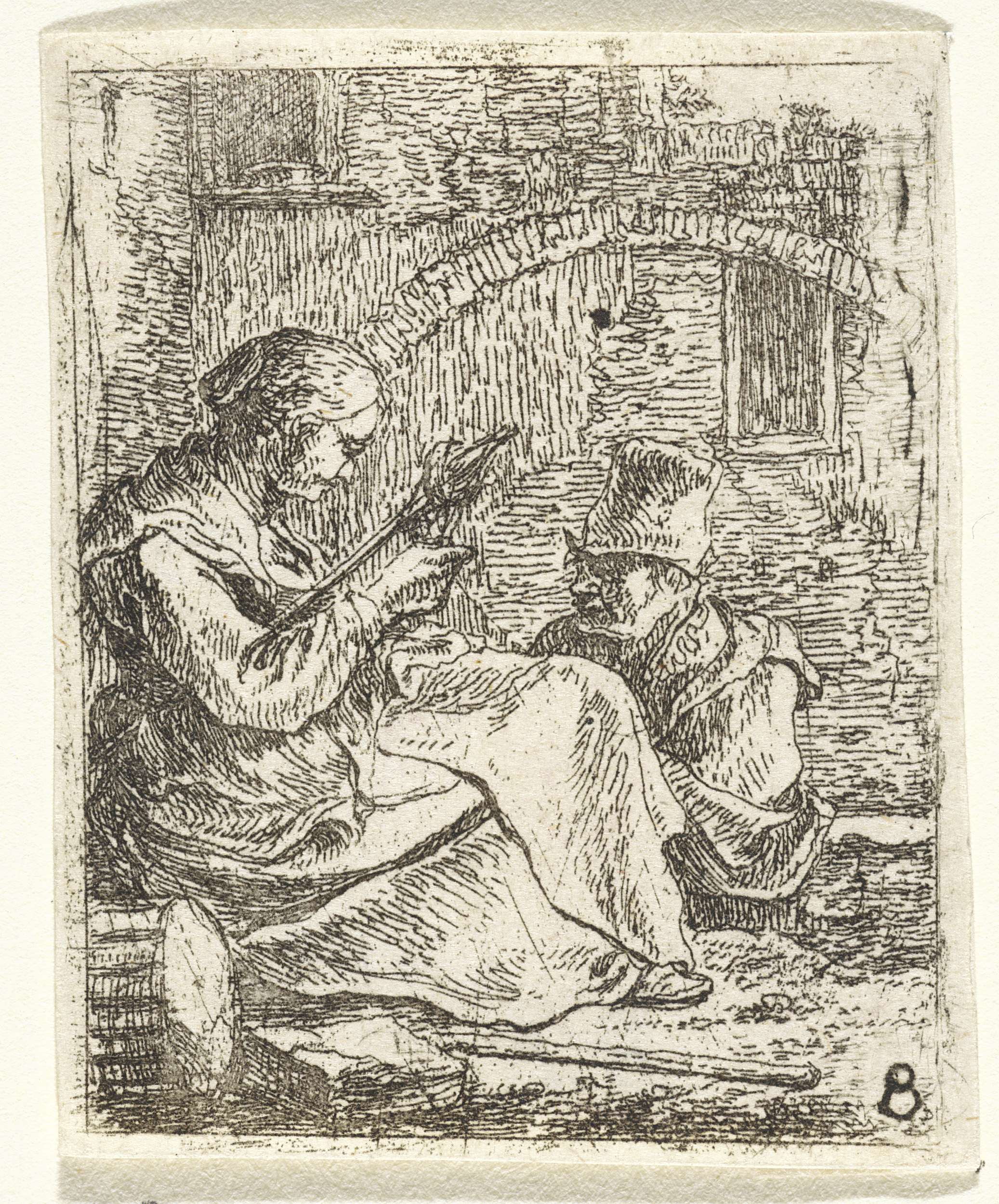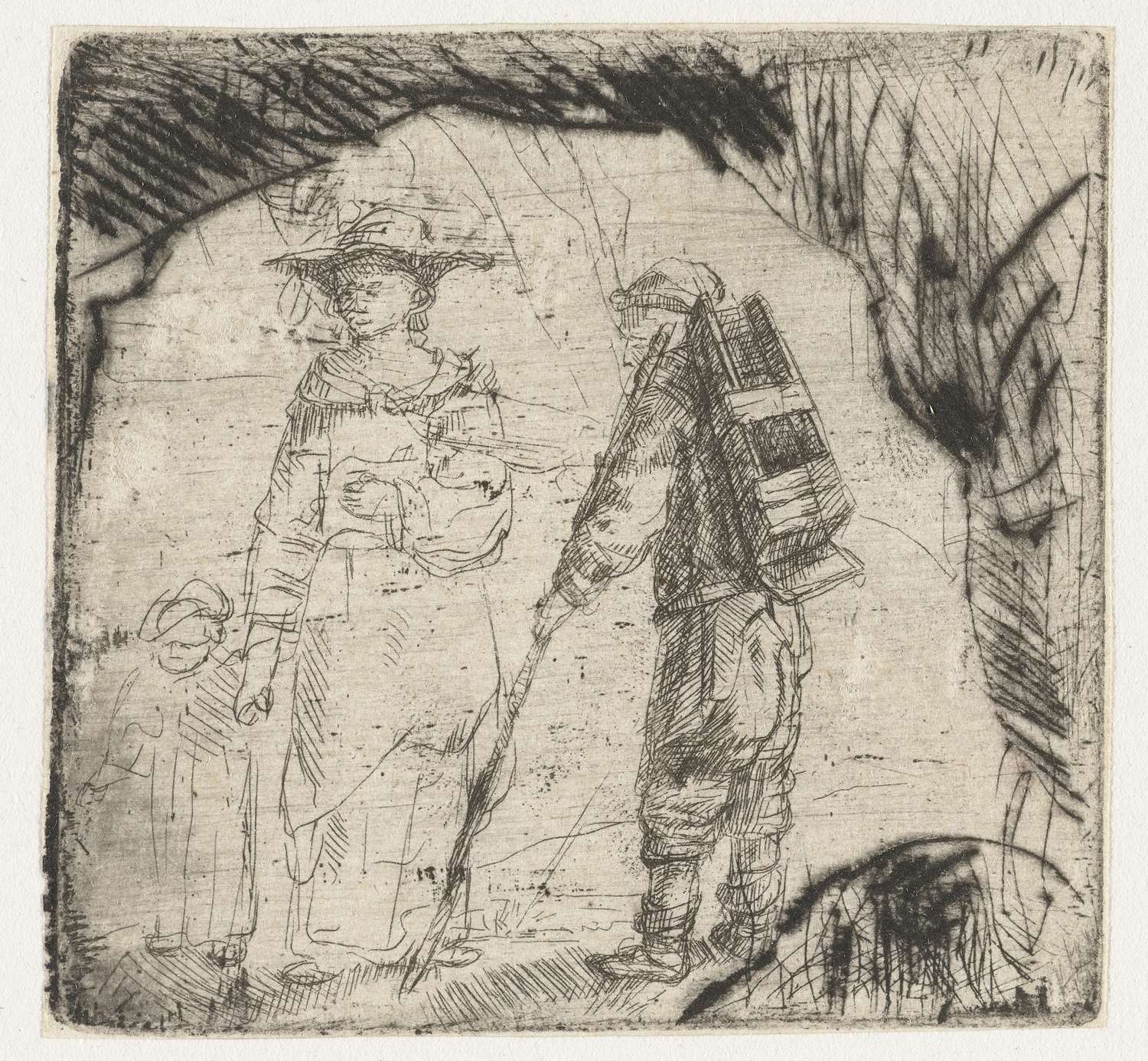 Vrouw met kind en een bedelaar