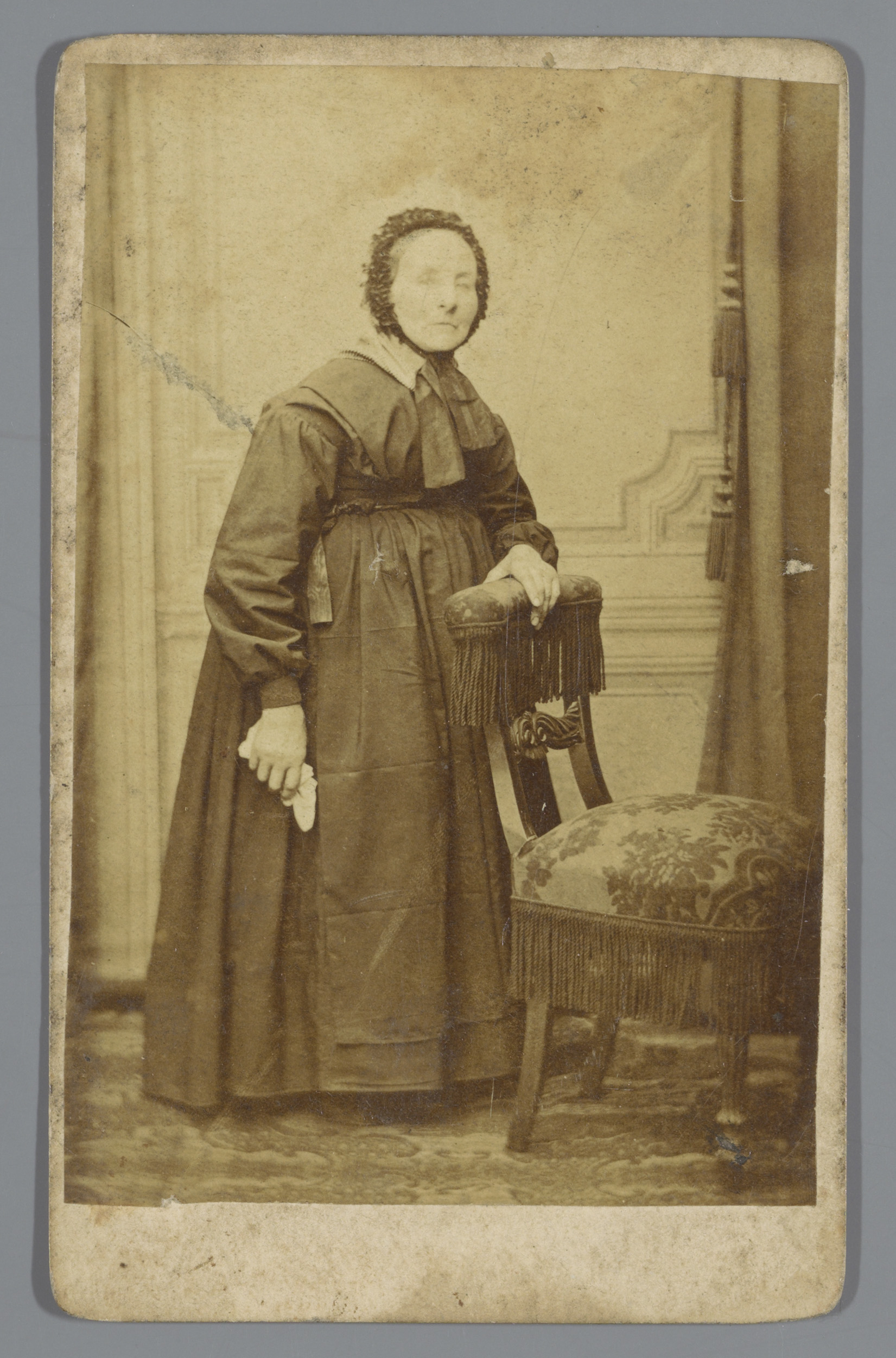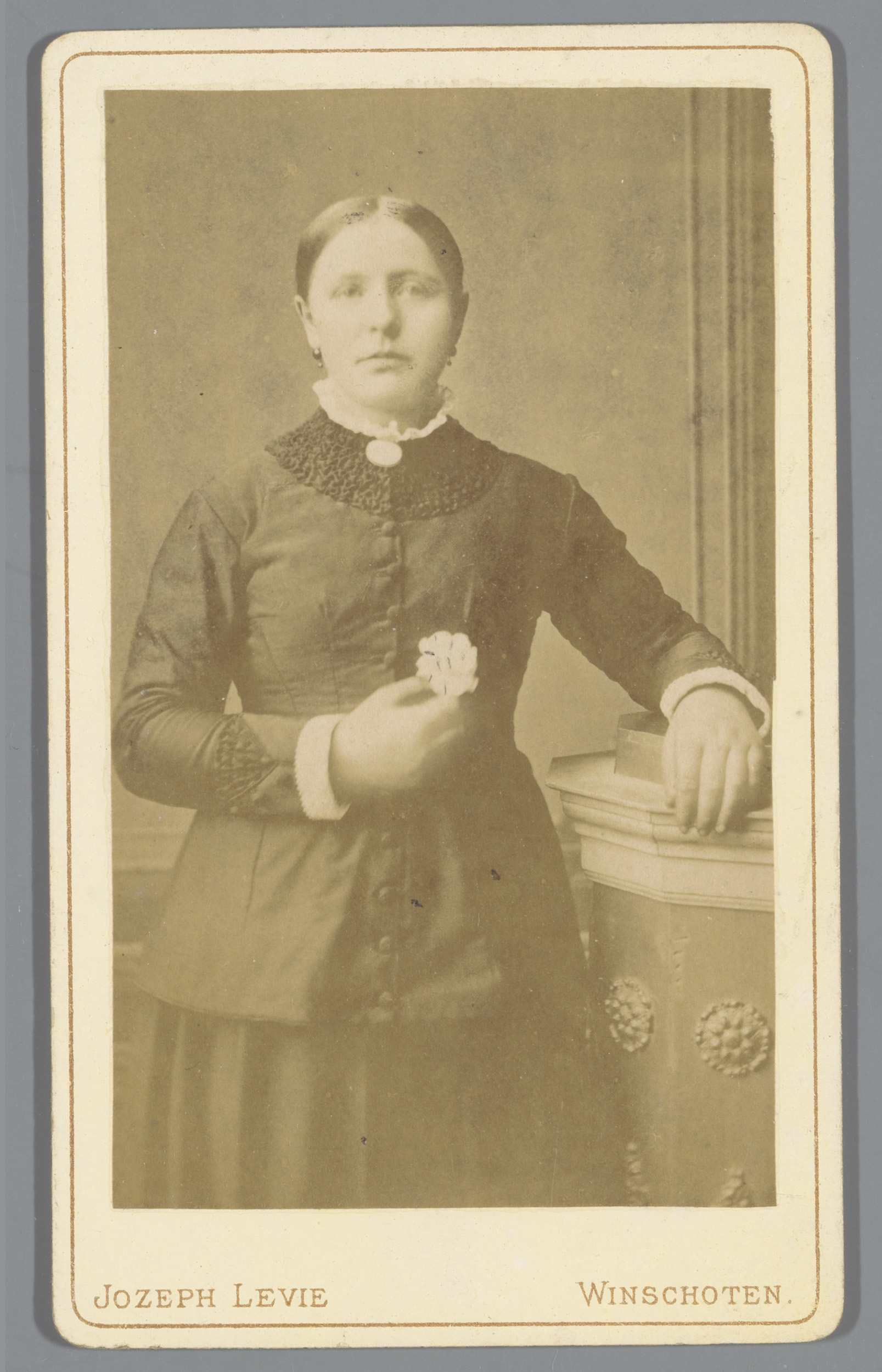Portret van een onbekende vrouw, staande naast een s...