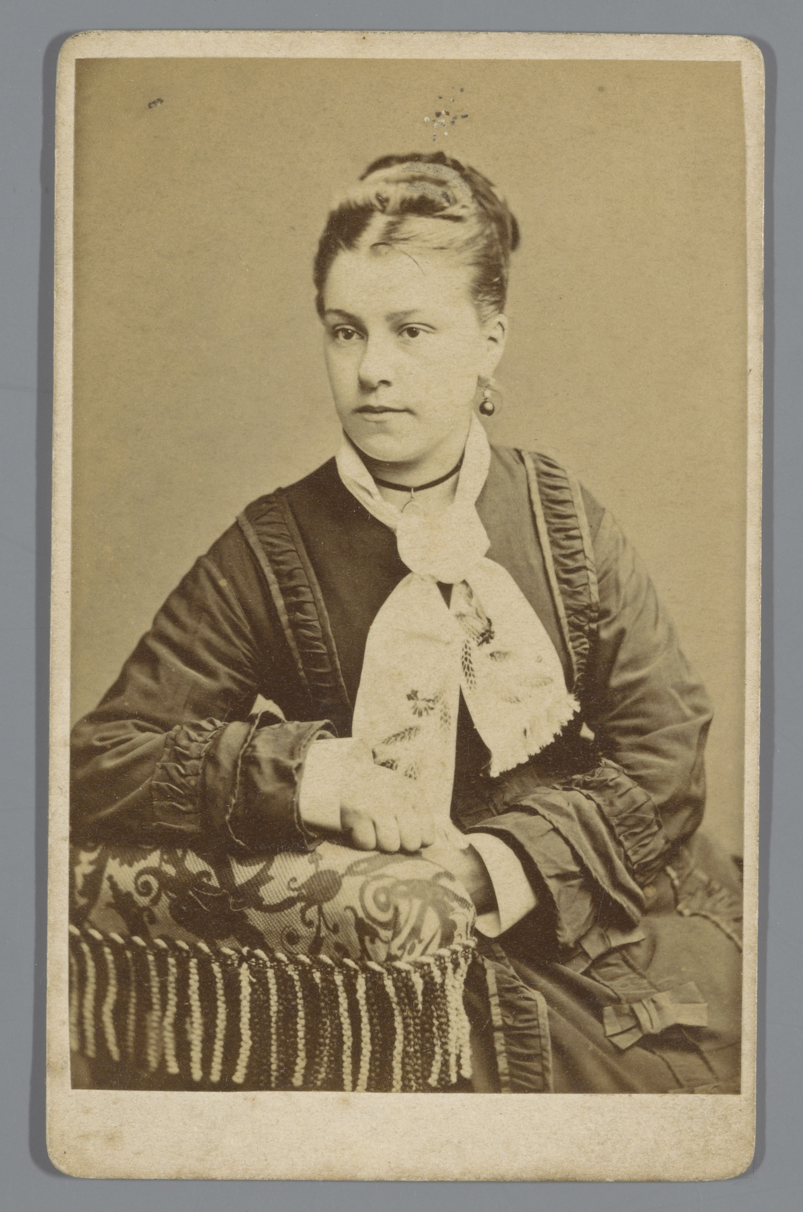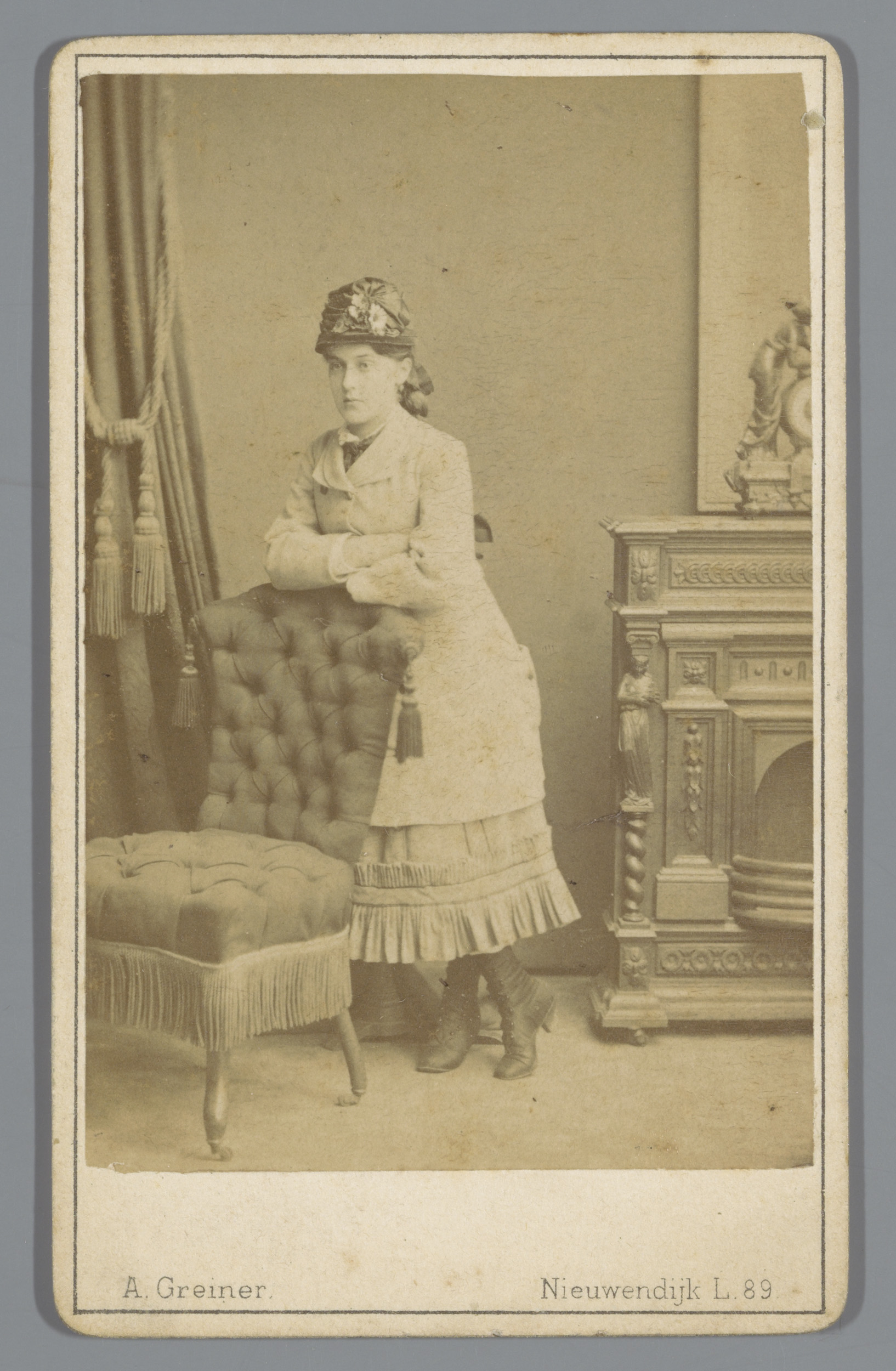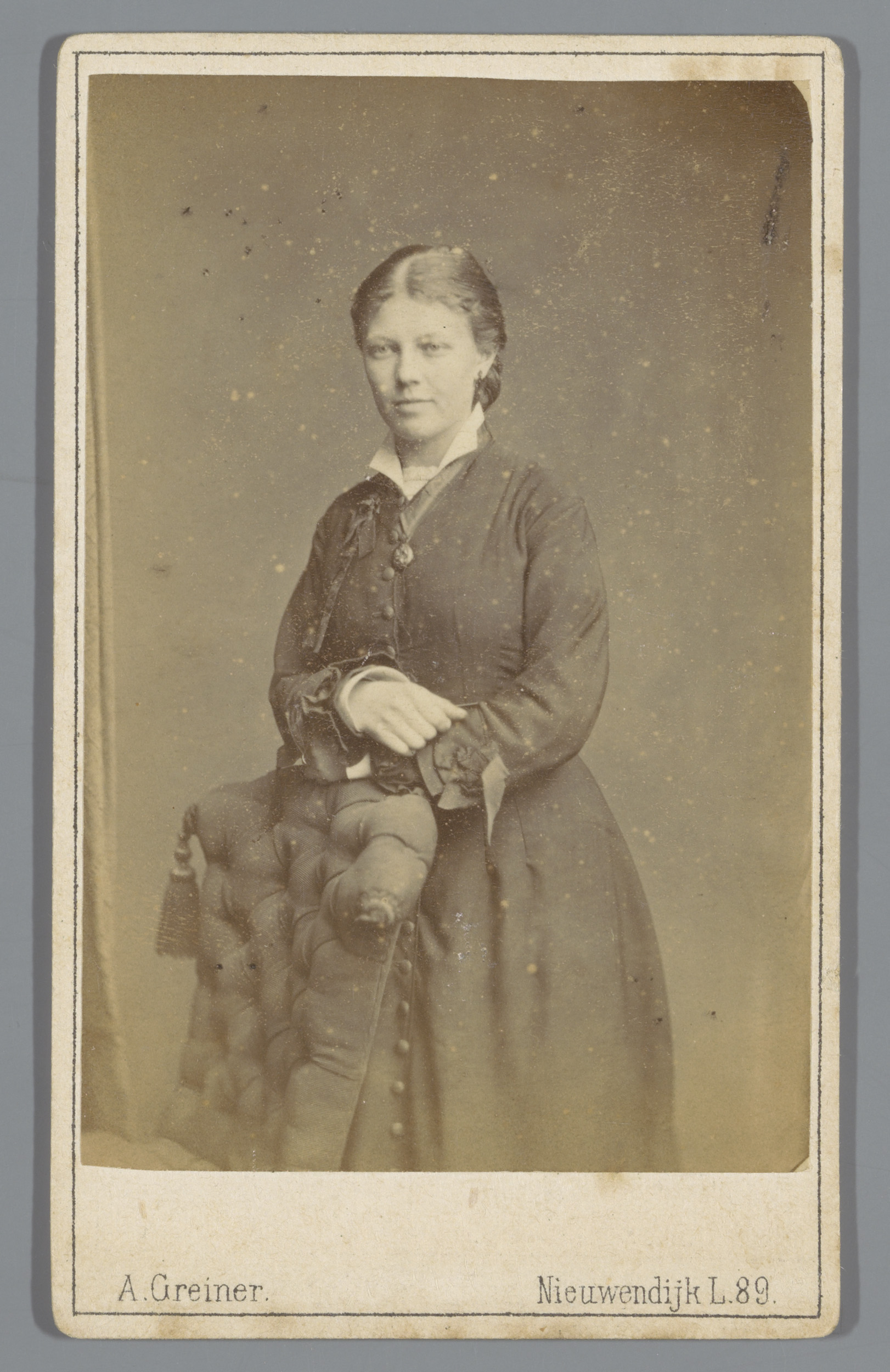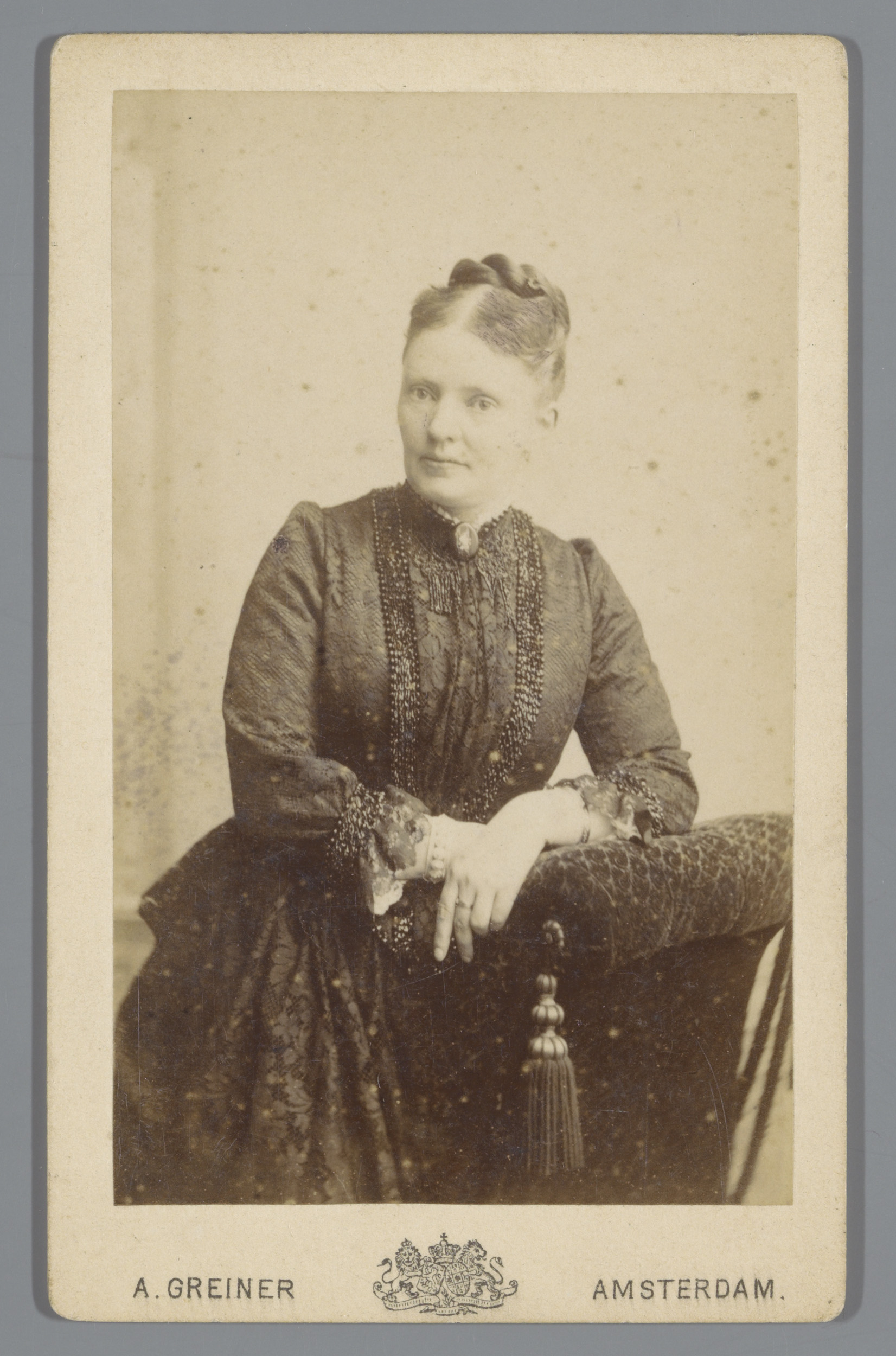 Portret van een onbekende vrouw, leunend over de rug...