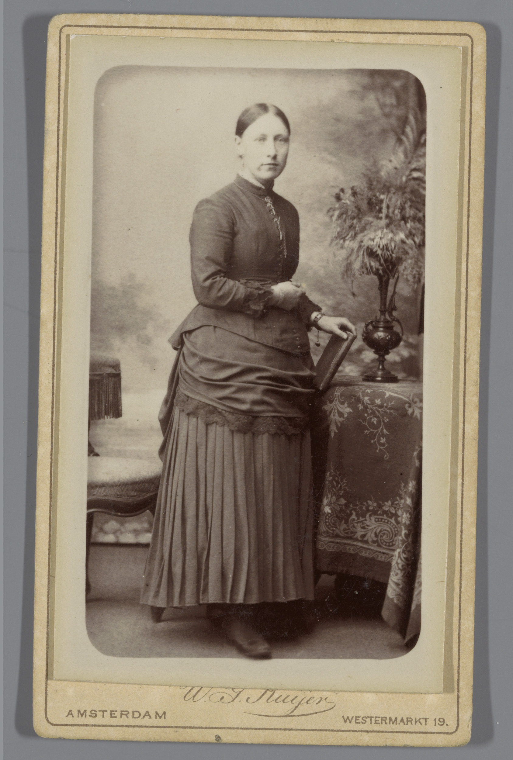 Portret van een onbekende vrouw, staande naast een t...